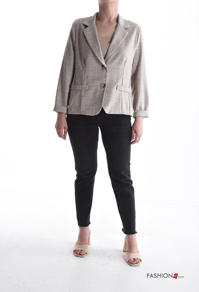 Home > Ropa > Abrigos y Chaquetas > Chaqueta manga larga Estampado tartán con botones sin forro