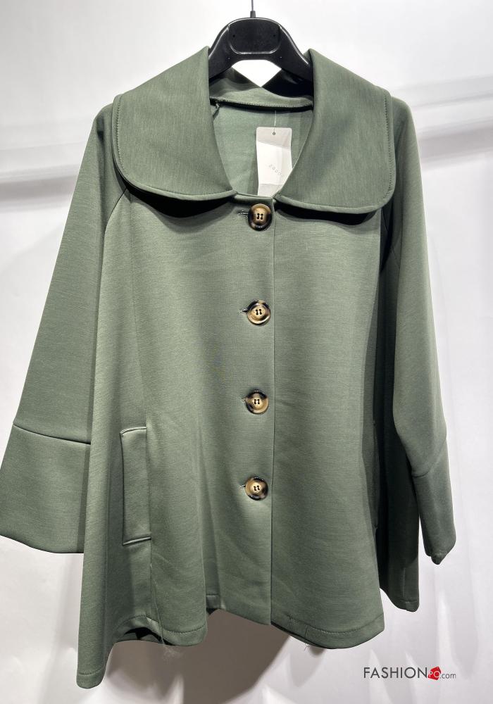 Home > Ropa > Abrigos y Chaquetas > Chaqueta manga larga con cuello con bolsillos con botones sin forro
