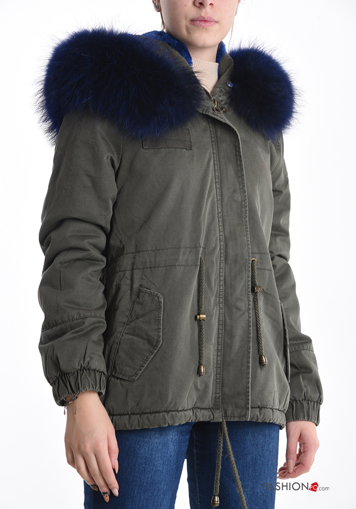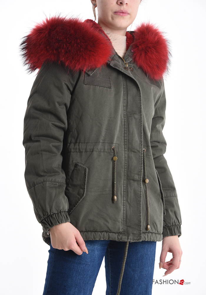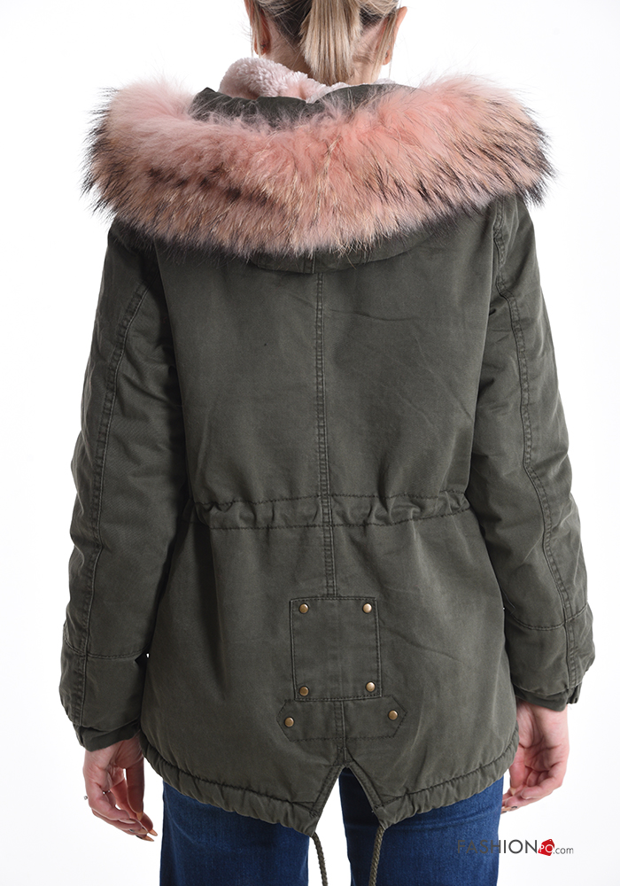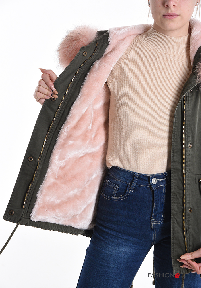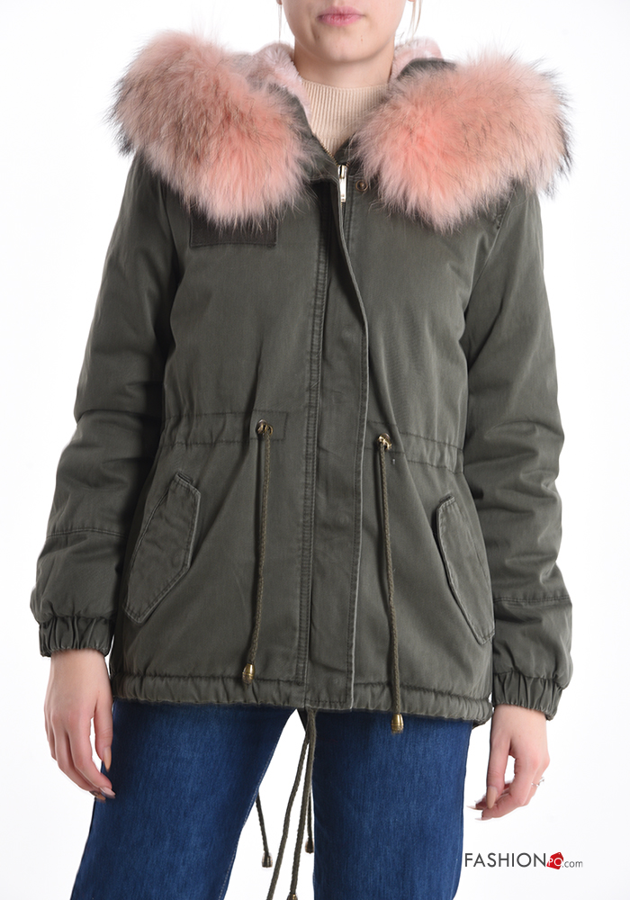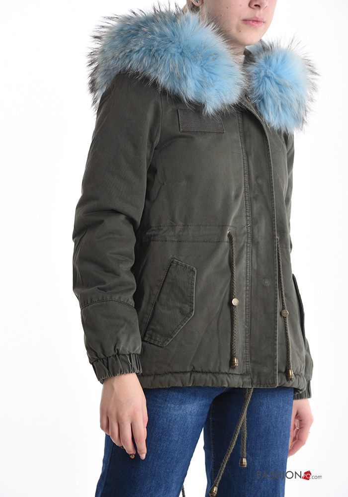 Parka de Algodón piel sintética con cremallera con capucha con bolsillos