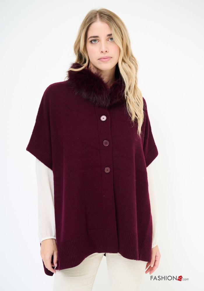 Poncho de Lana piel sintética sin mangas con botones