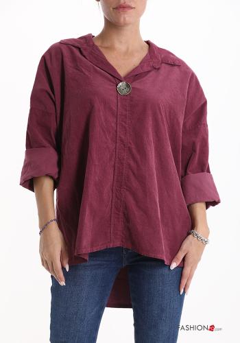 Blusa de Algodón de Terciopelo con cuello en v con botones manga tres cuartos