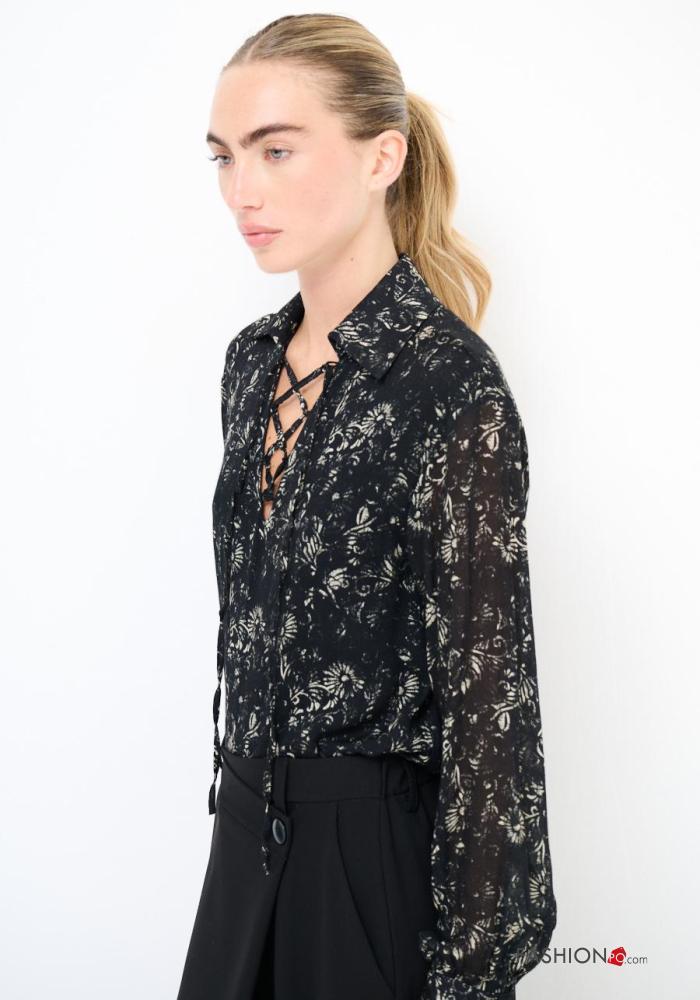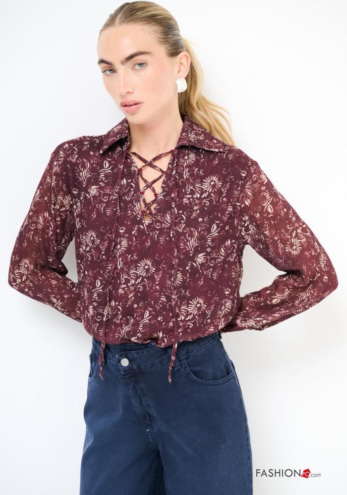 Home > Ropa > Camisas y Blusas > Blusa de Mezcla de Lana manga larga con cuello Diseño impreso con nodo