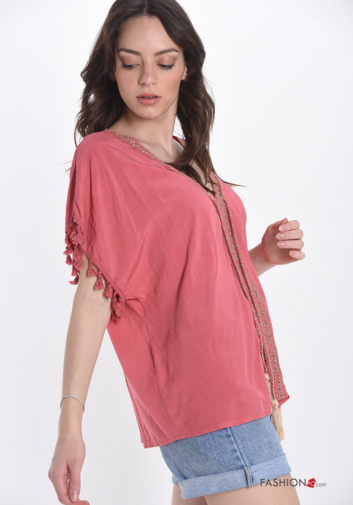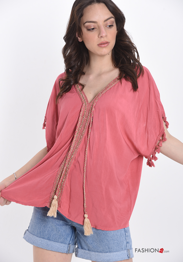 Home > Ropa > Camisas y Blusas > Blusa encaje escote v con flecos con cinta