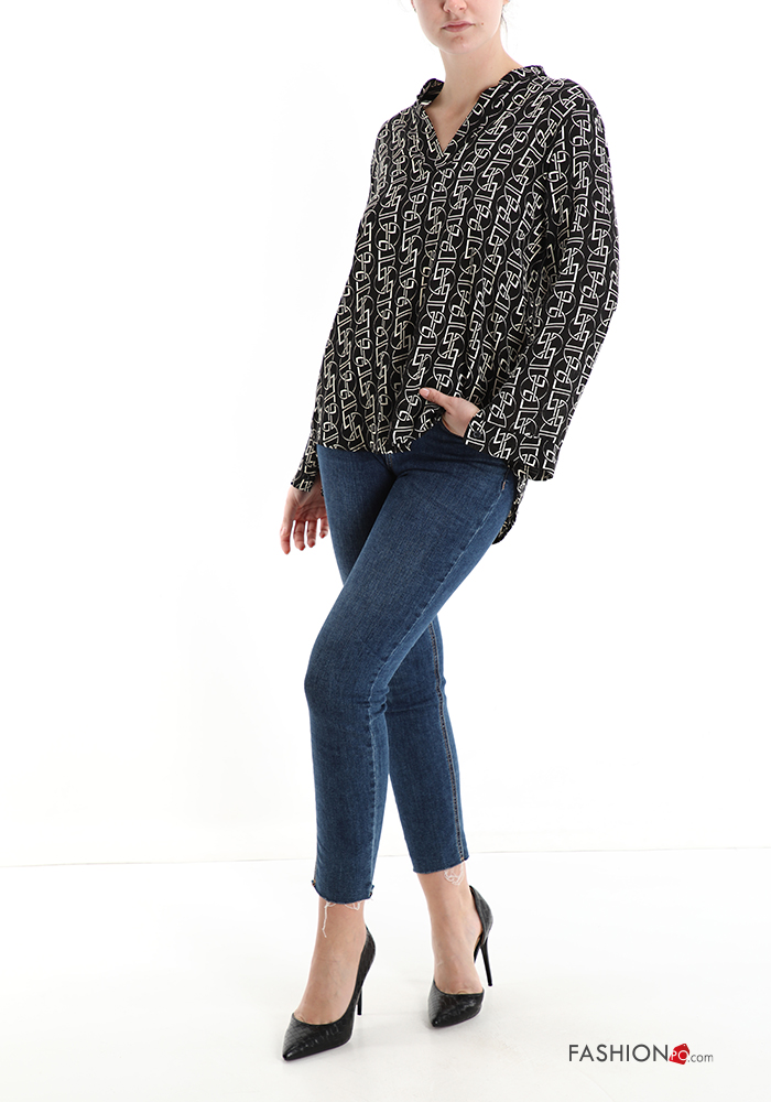 Home > Ropa > Camisas y Blusas > Blusa escote en v Diseño impreso con botones