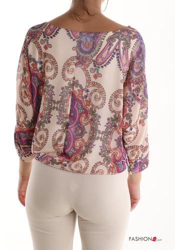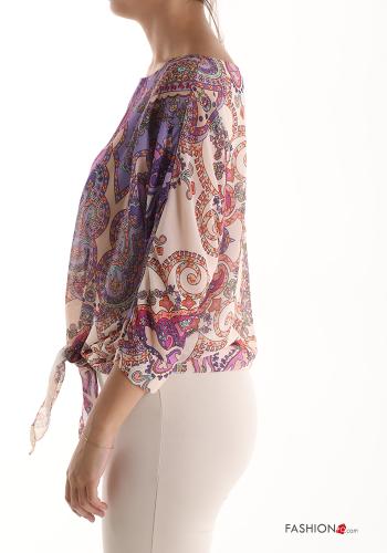 Blusa Estampado dévoré con nodo manga tres cuartos
