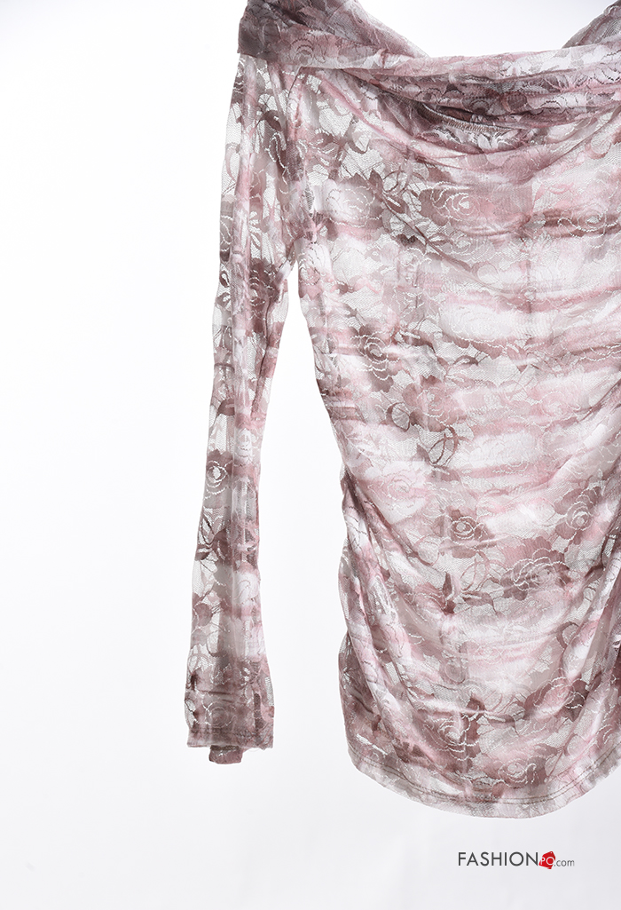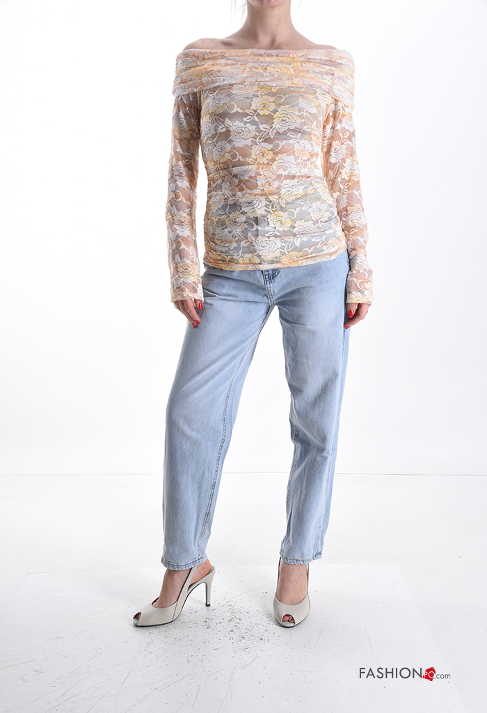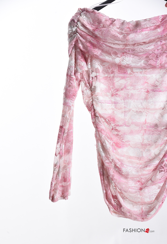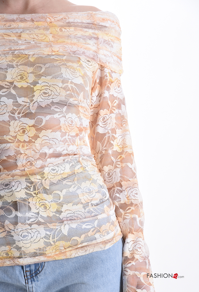 Blusa manga larga Estampado Floral escote bardot