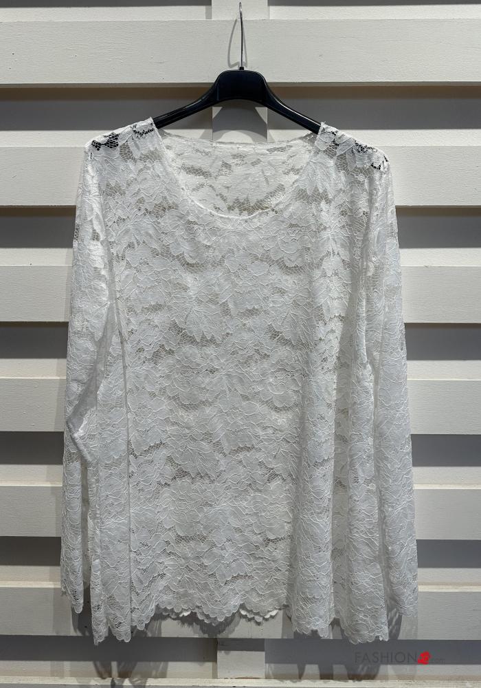 Home > Ropa > Camisas y Blusas > Blusa manga larga encaje cuello redondo sin forro
