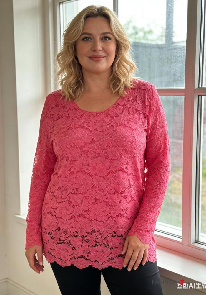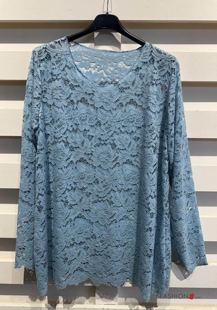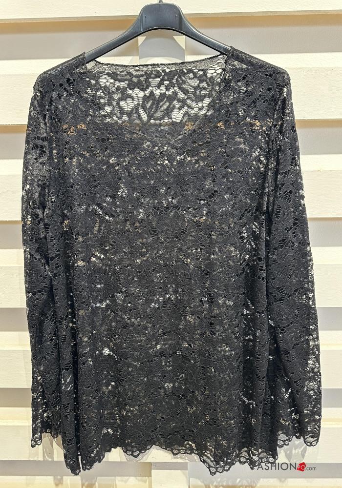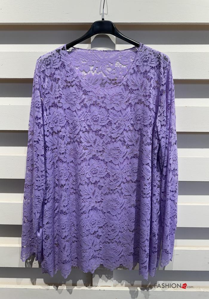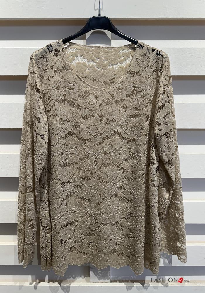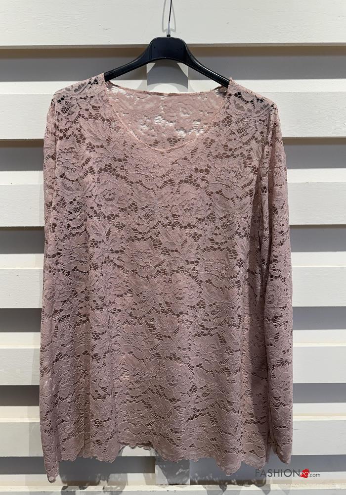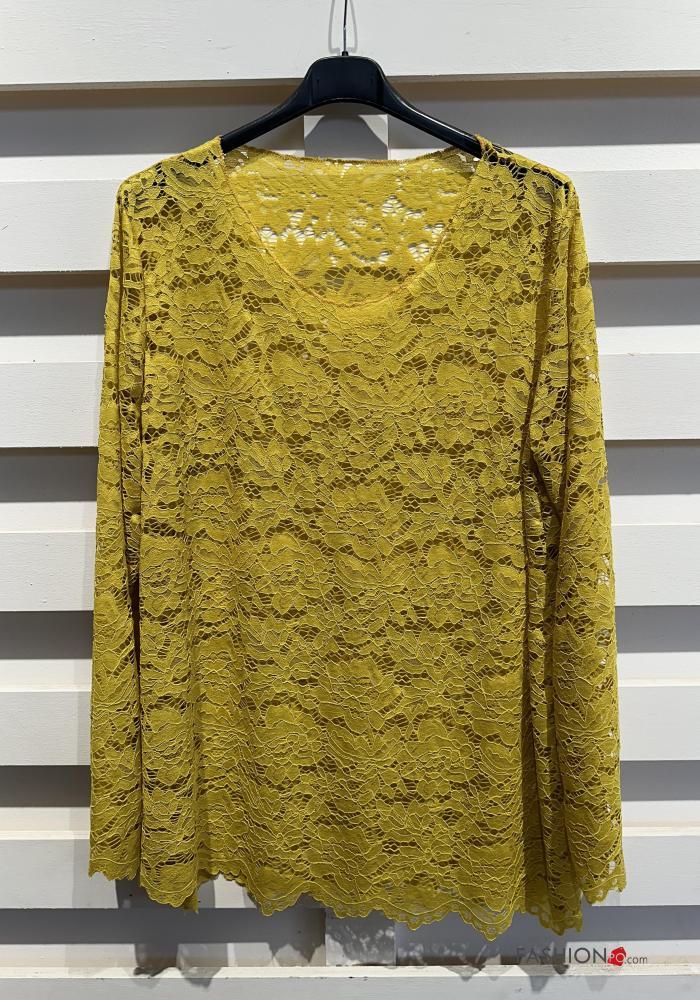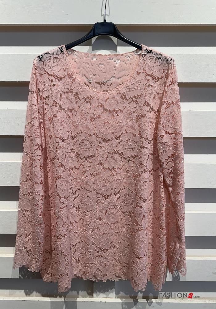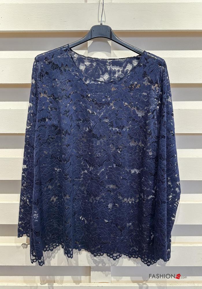 Blusa manga larga encaje cuello redondo sin forro