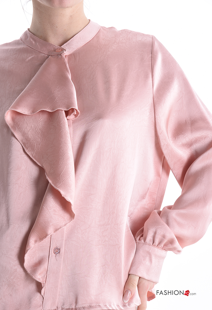 Camisa satén manga larga con volantes con botones