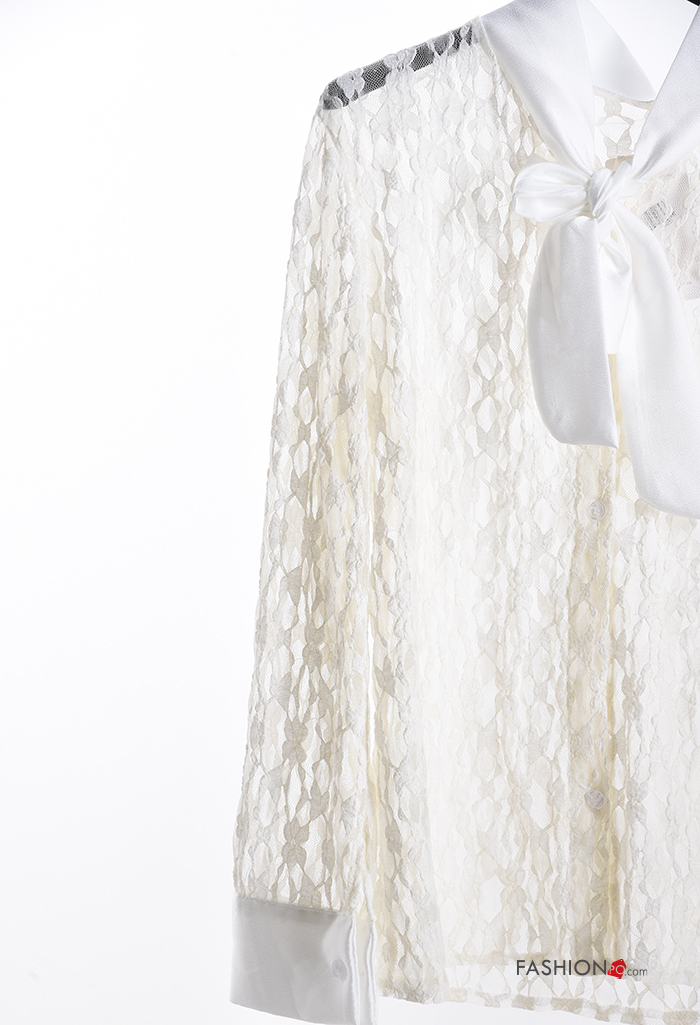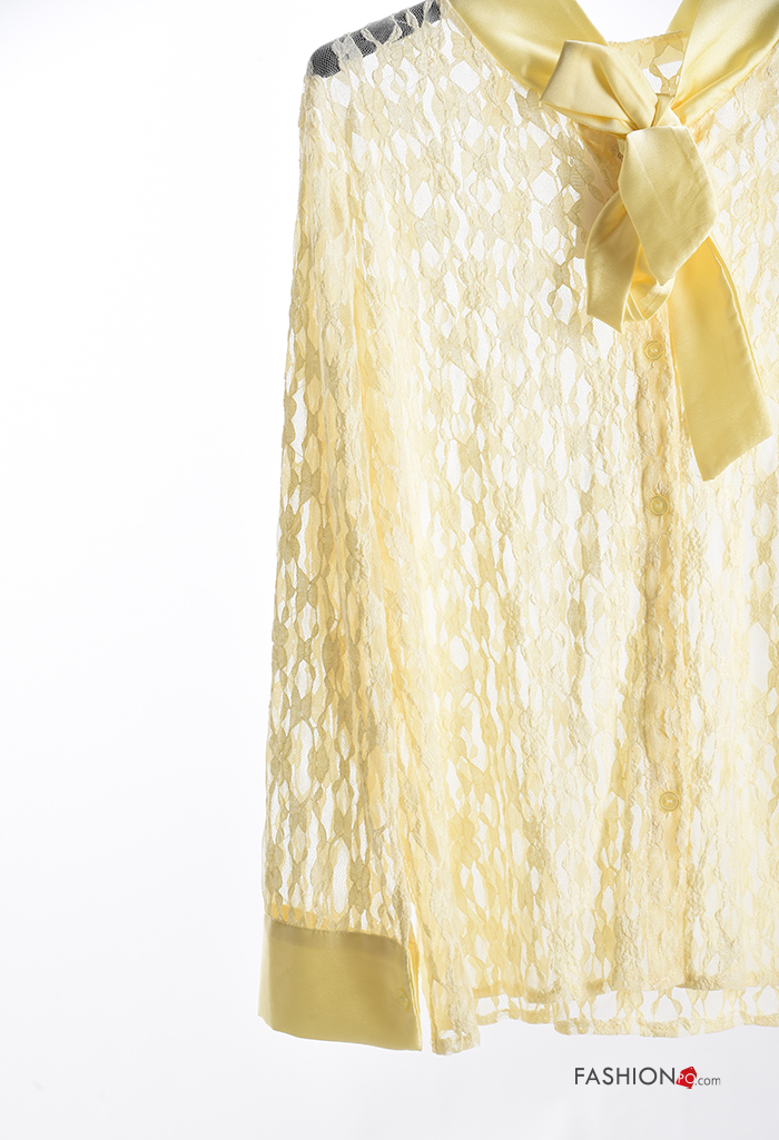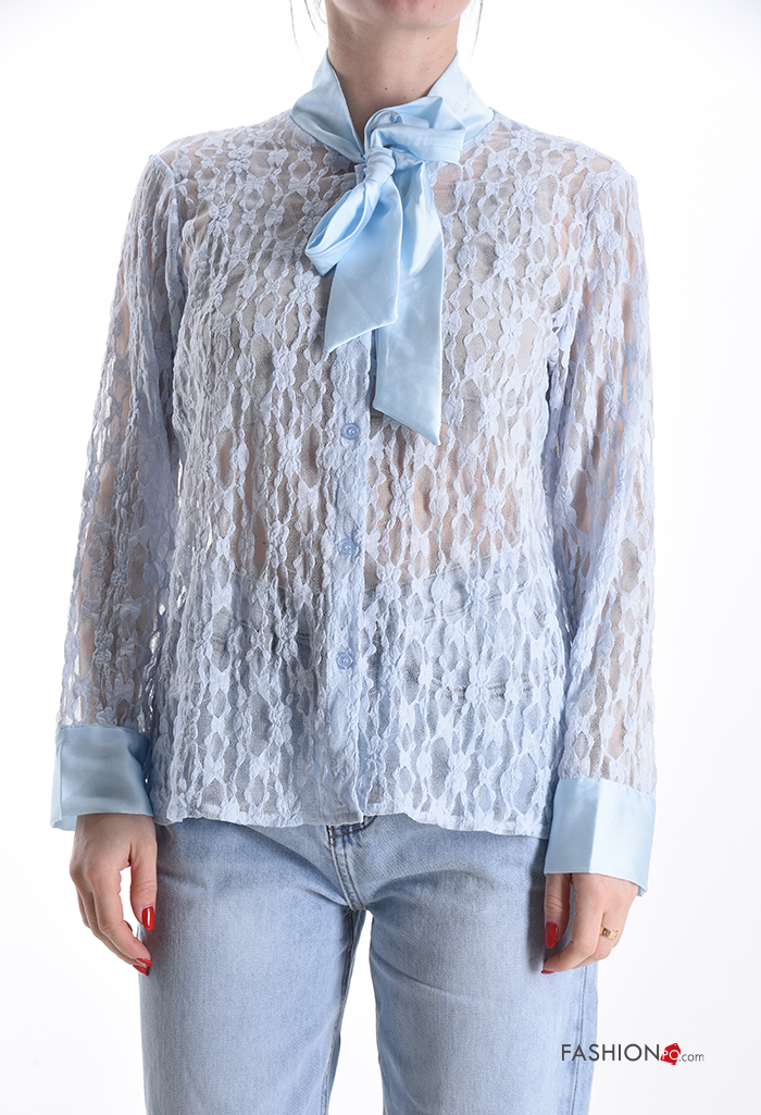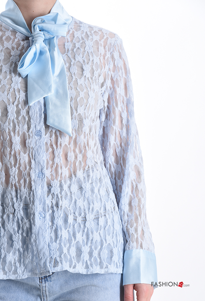Home > Ropa > Camisas y Blusas > Camisa manga larga Patrón bordado con botones con lazo