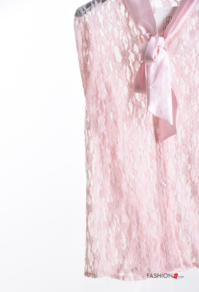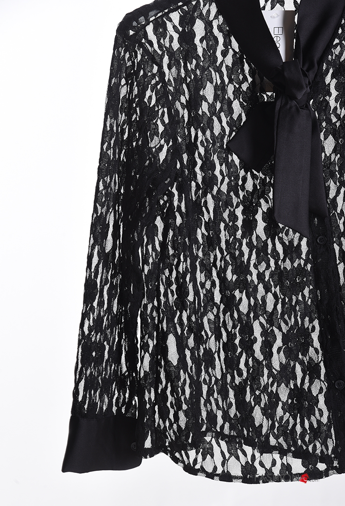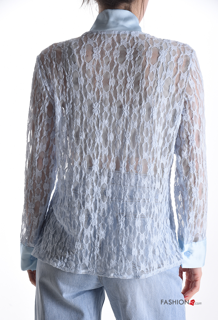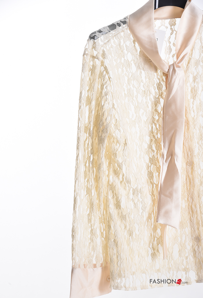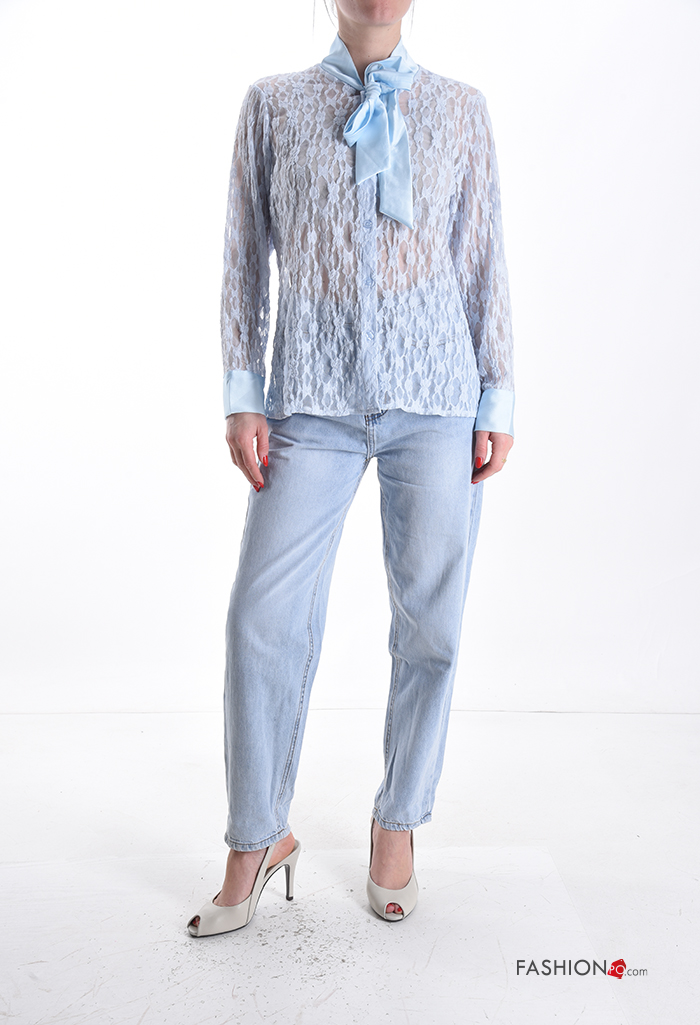 Home > Ropa > Camisas y Blusas > Camisa manga larga Patrón bordado con botones con lazo