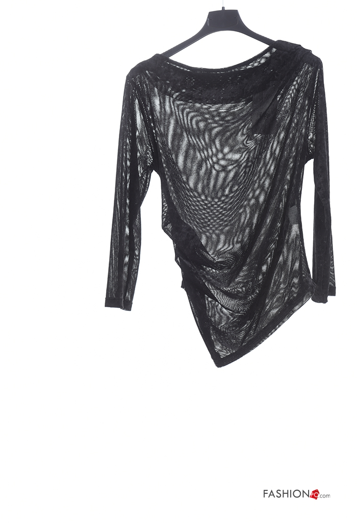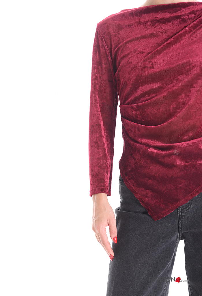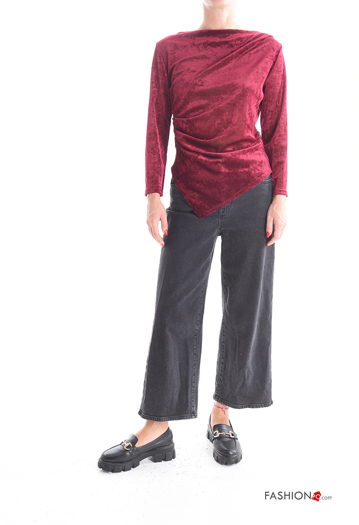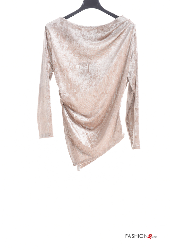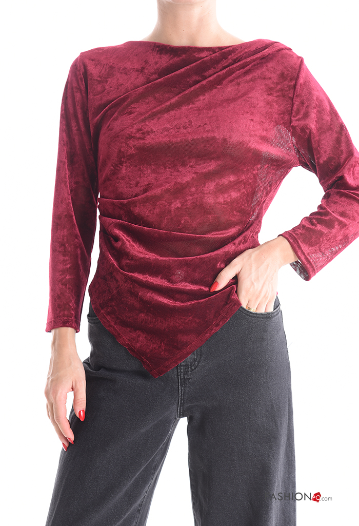 Blusa manga larga cuello redondo de Terciopelo asimetrico