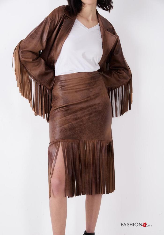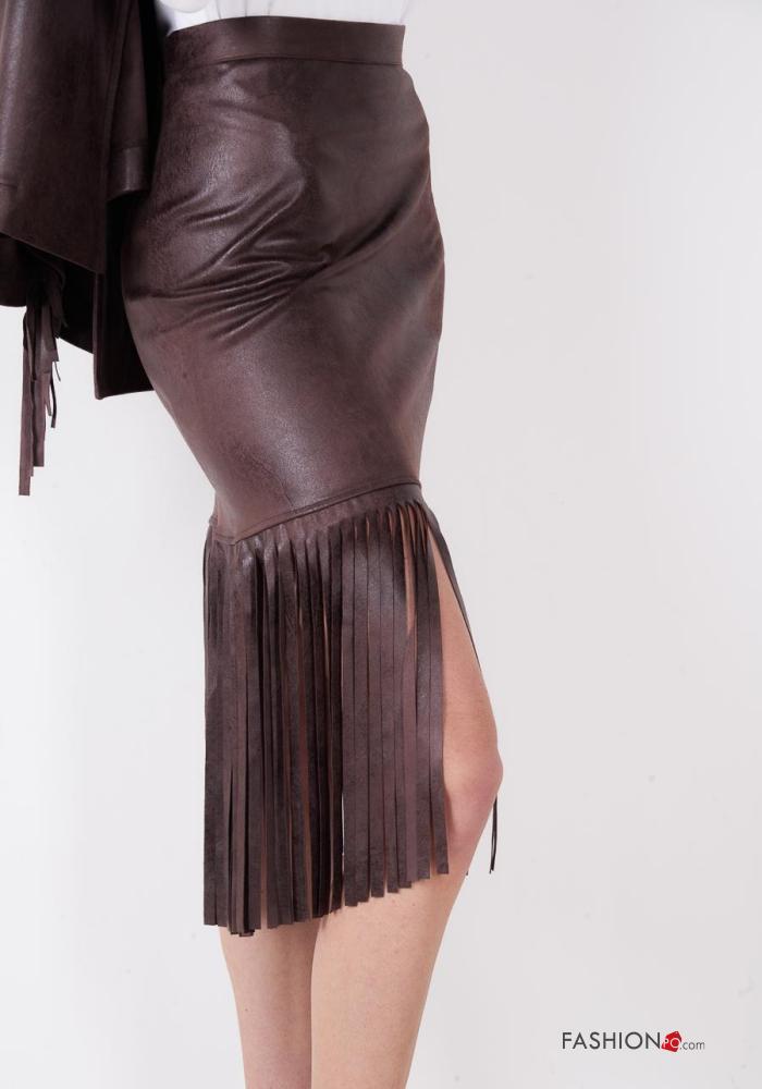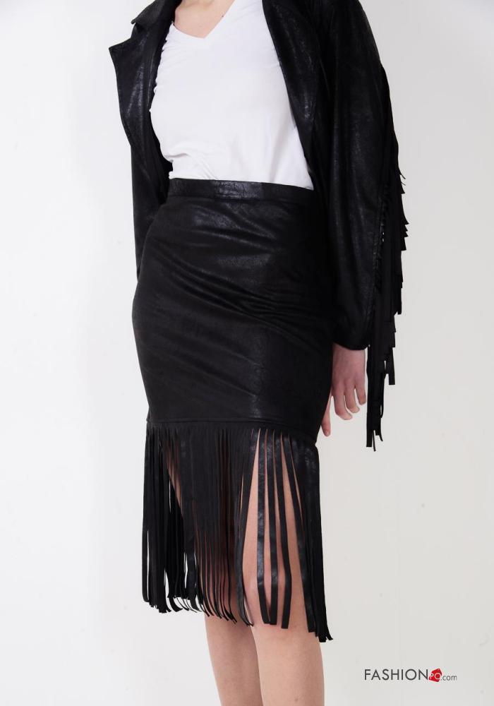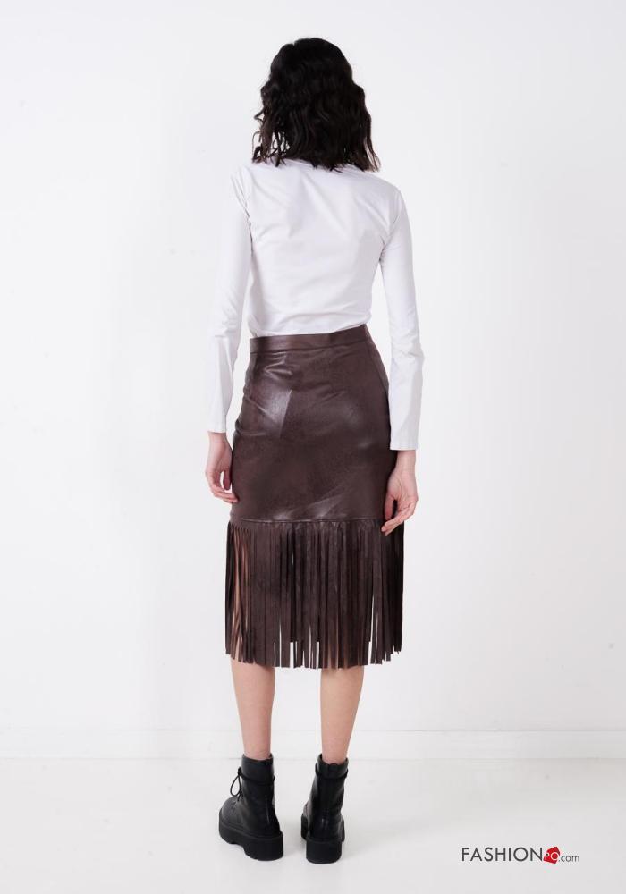 Falda imitación de cuero con cremallera con flecos