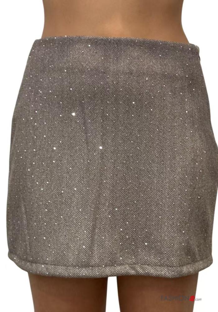 Minifalda brillante con cremallera con brillantes