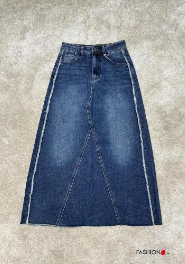Falda de Algodón tela vaquera con botones con cremallera con abertura con bolsillos