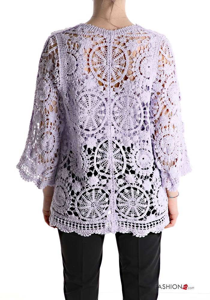 Home > Ropa > Jerséis y Cárdigans > Chaqueta de punto de Algodón encaje manga tres cuartos