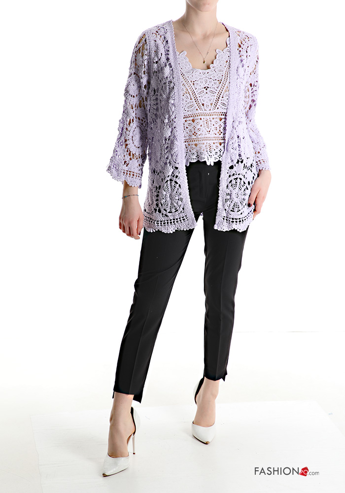 Chaqueta de punto de Algodón encaje manga tres cuartos