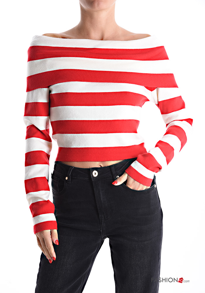 Jersey manga larga corto a rayas escote bardot