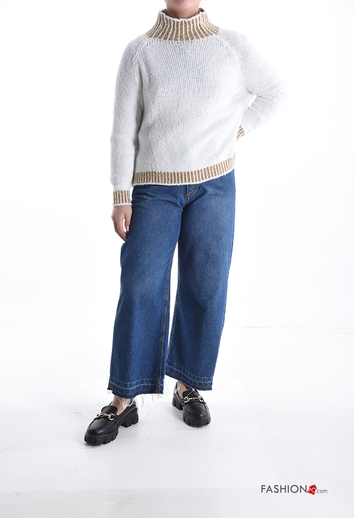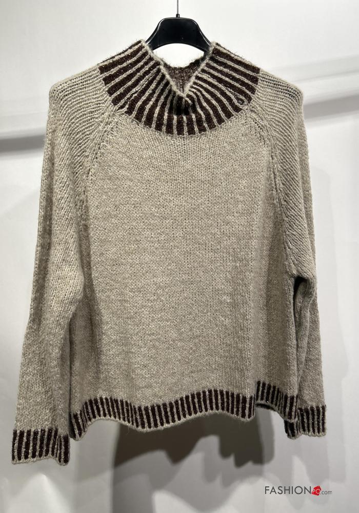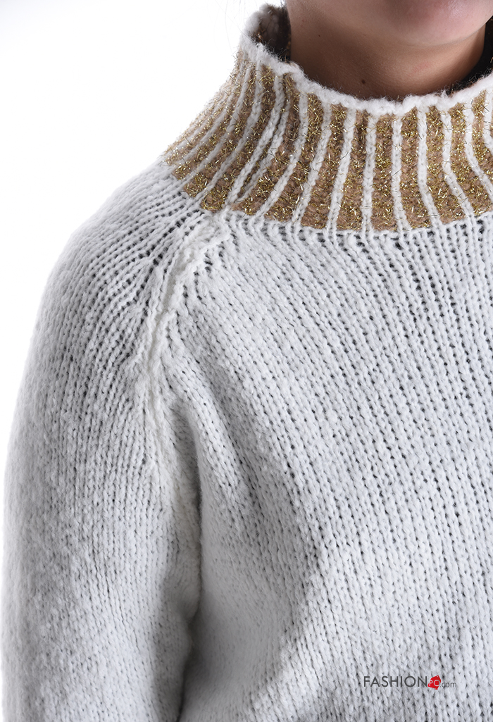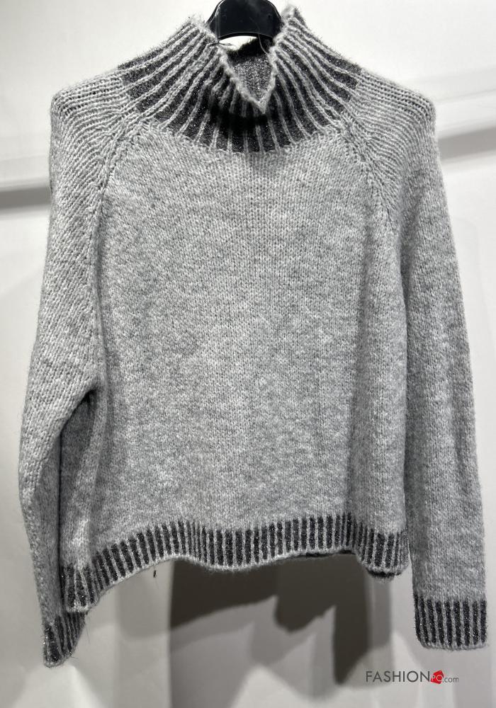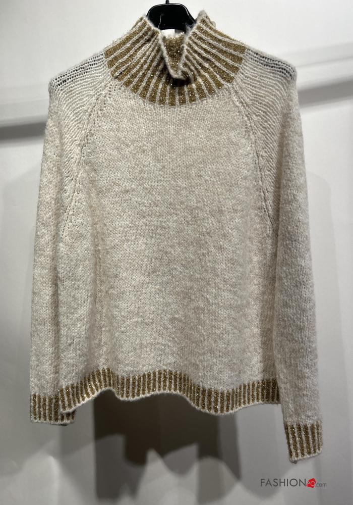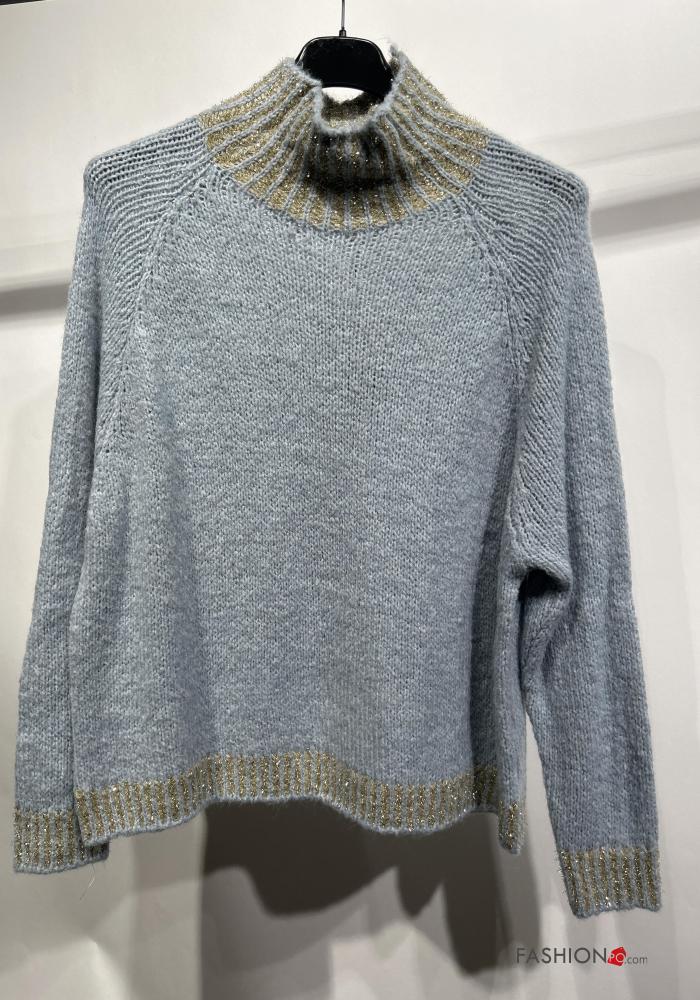 Jersey de Mezcla de Lana De lurex manga larga de cuello alto