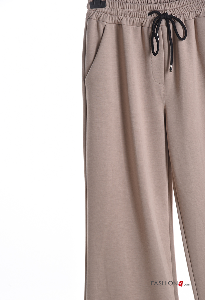 Pantalones deportivos wide leg con bolsillos con cordón
