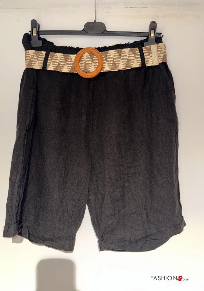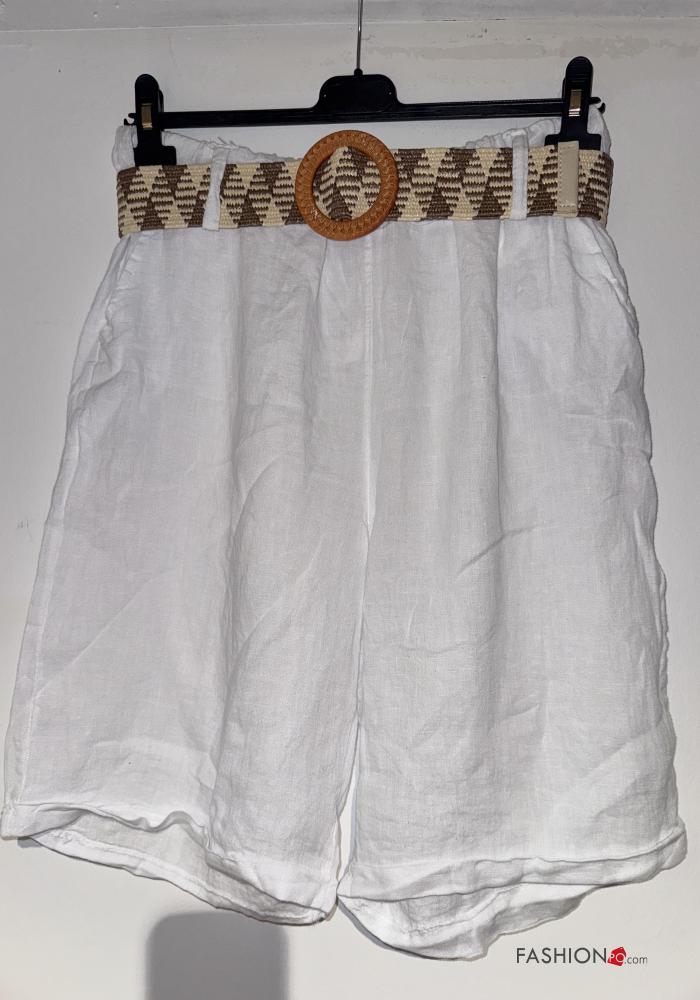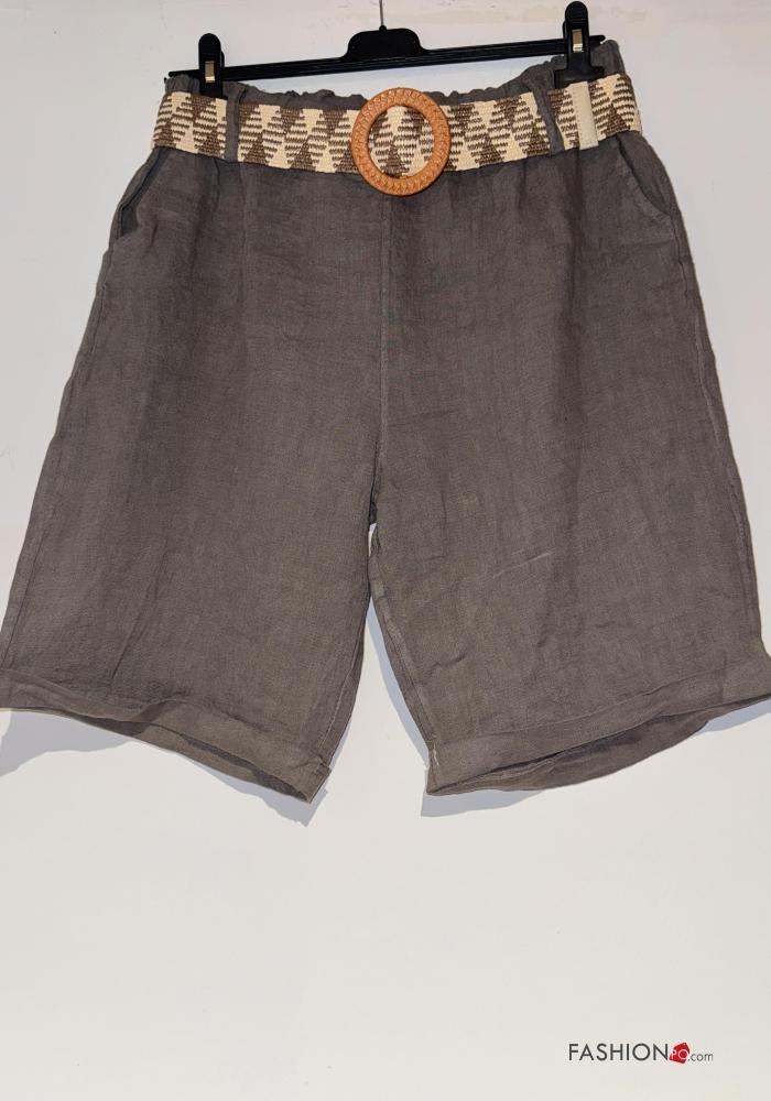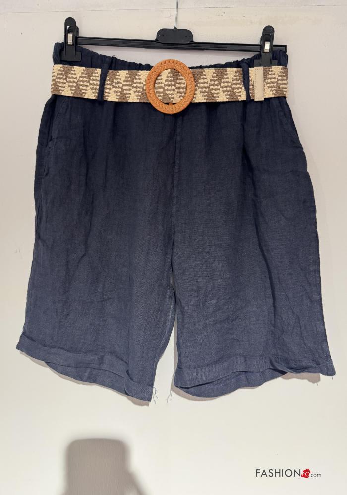 Bermudas de Lino con bolsillos con cinturón con elástico