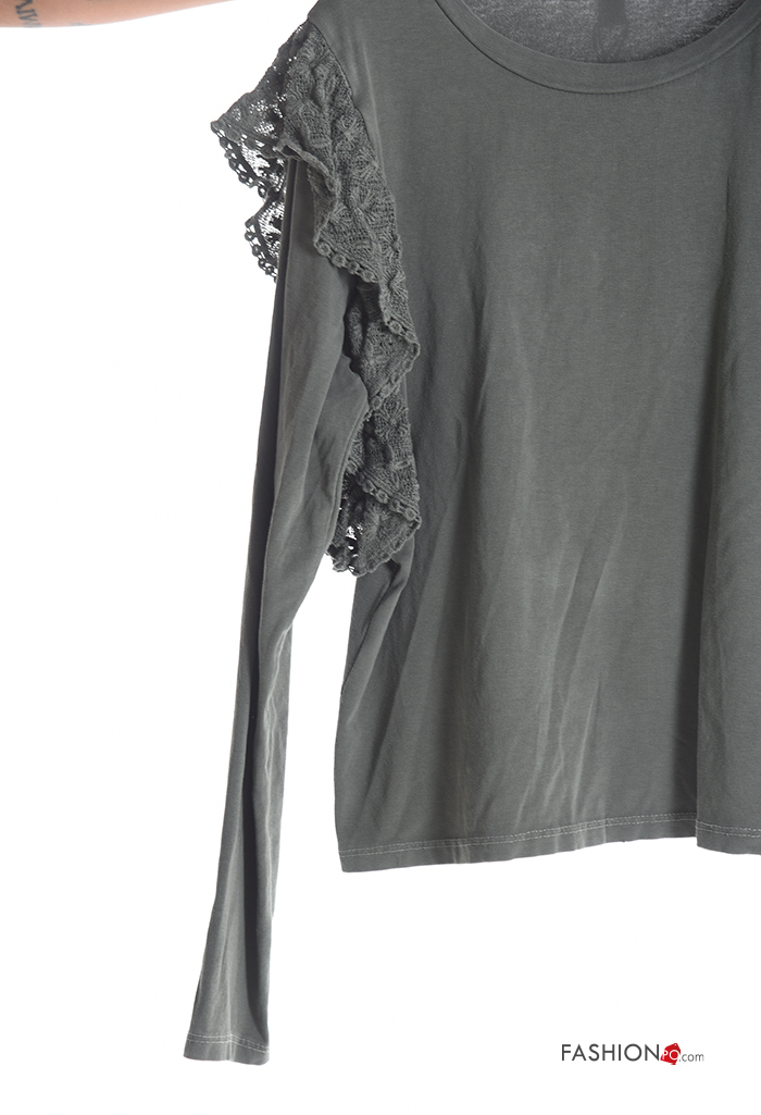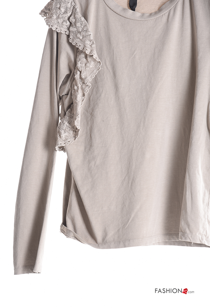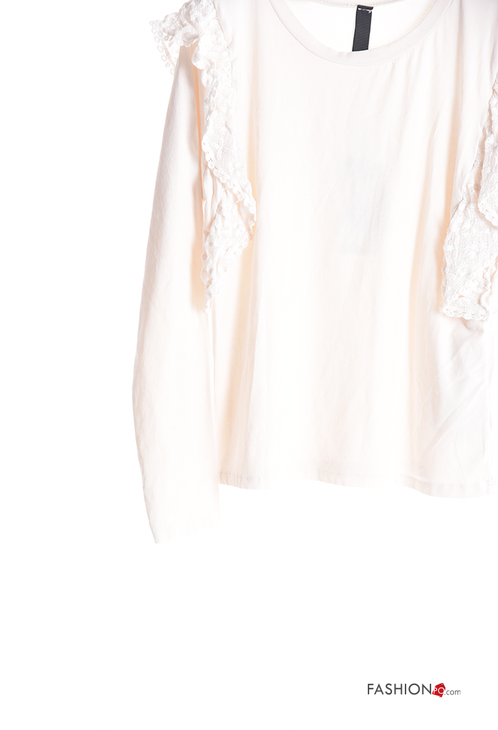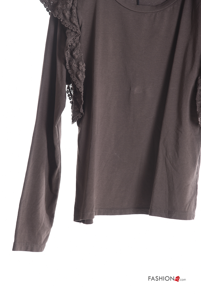 Home > Ropa > Camisetas y tops > Camiseta de manga larga de Algodón manga larga cuello redondo Patrón bordado