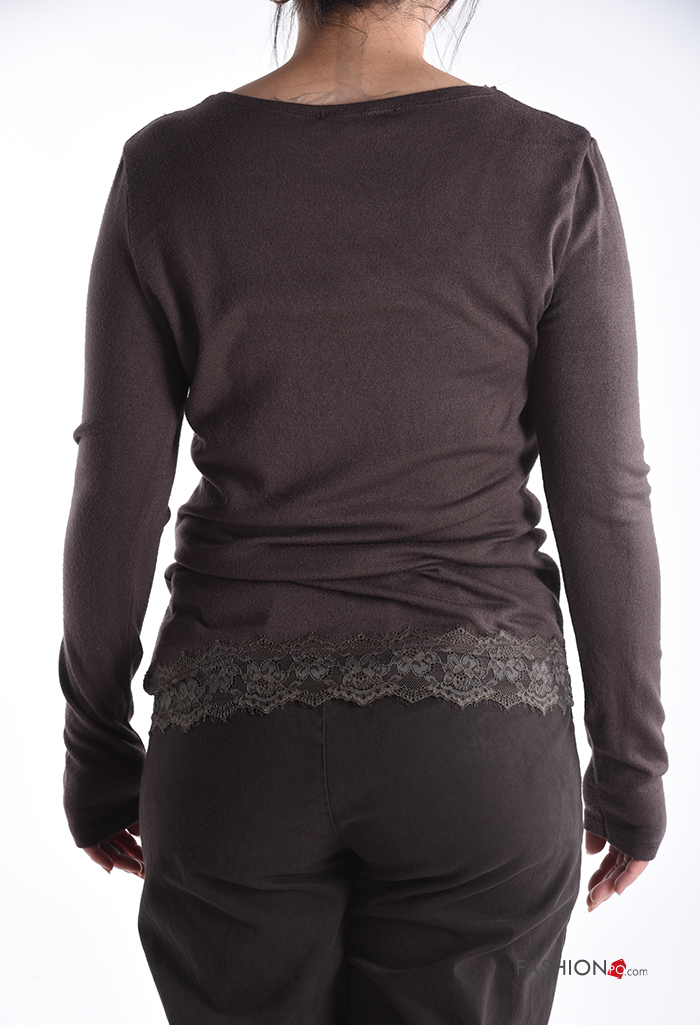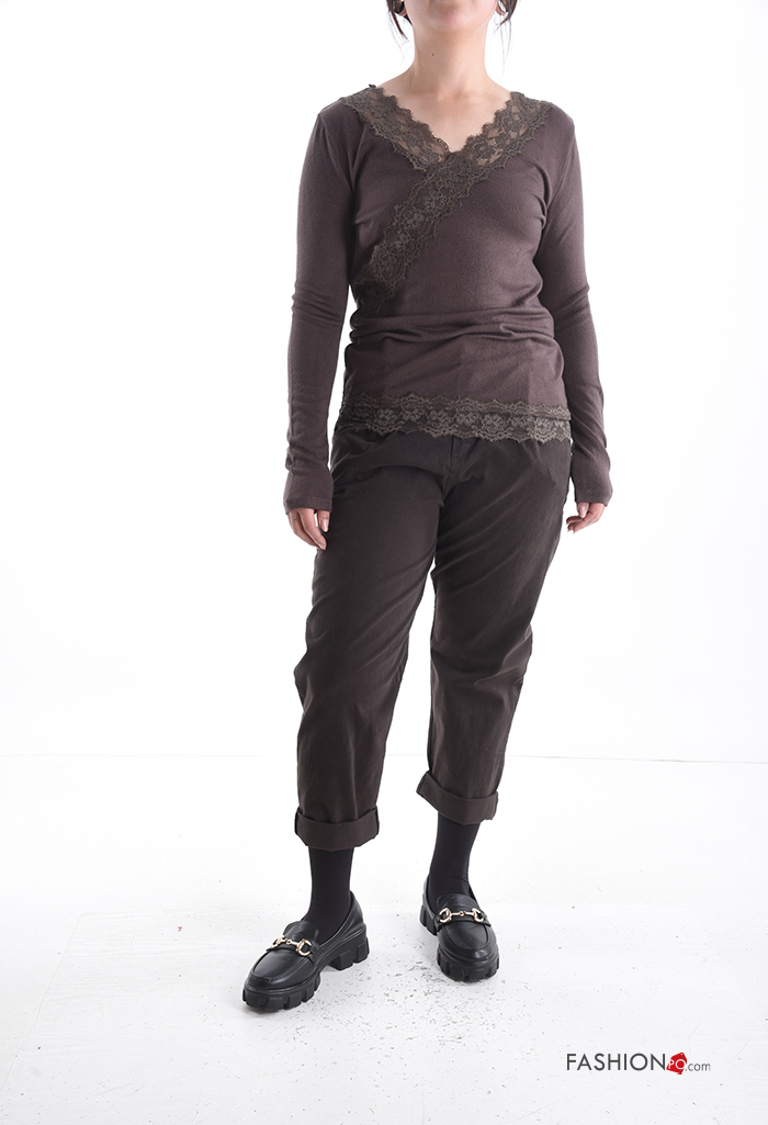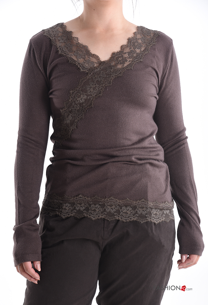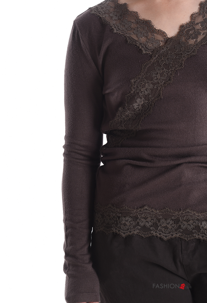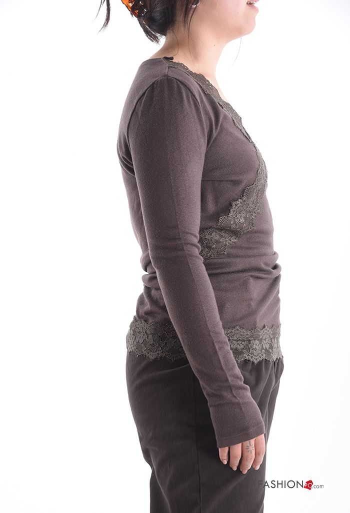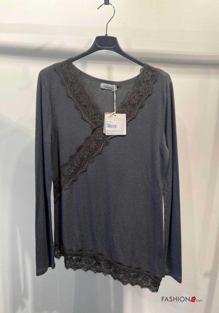 Camiseta de manga larga encaje con cuello en v