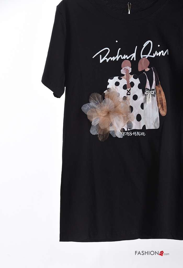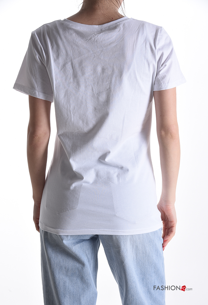 T-shirt de Algodón manga corta cuello redondo Diseño impreso