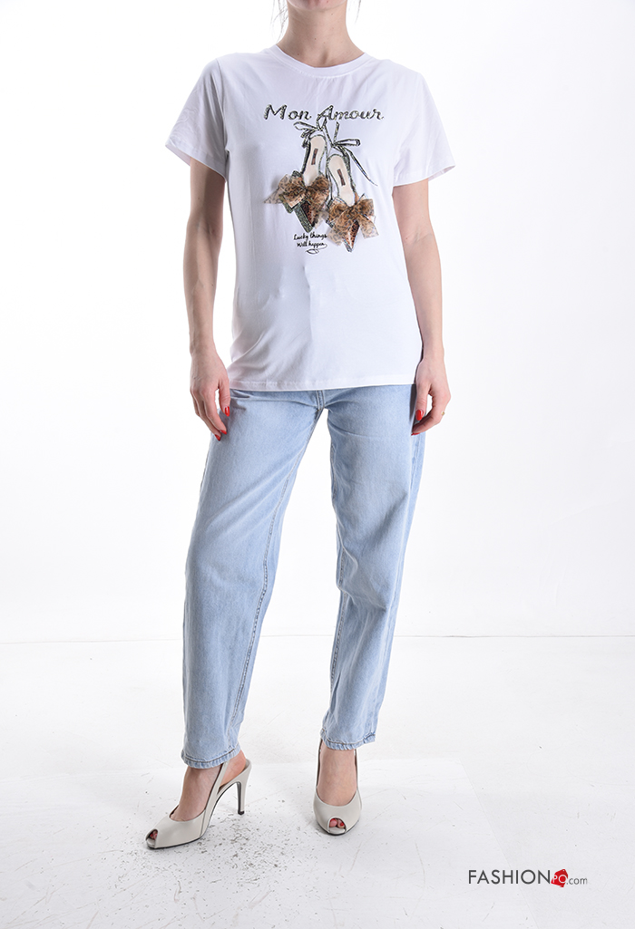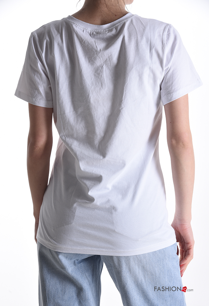 T-shirt de Algodón manga corta cuello redondo Diseño impreso