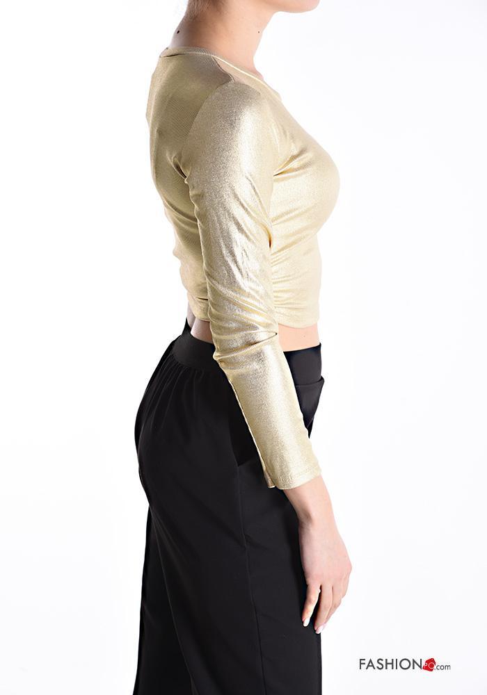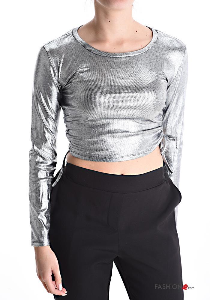 Top metalizado manga larga cuello redondo con cordón