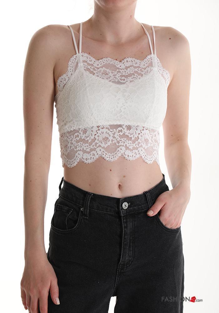Top sin mangas espalda descubierta encaje corto con copas