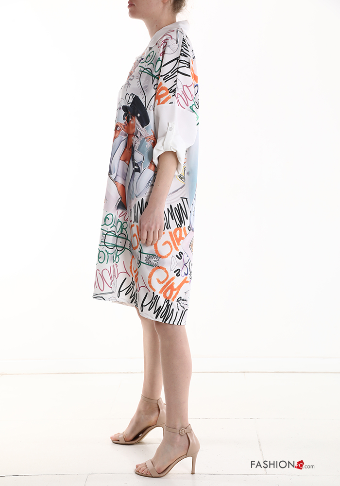 Vestido camisero por la rodilla Patrones de escritura manga tres cuartos