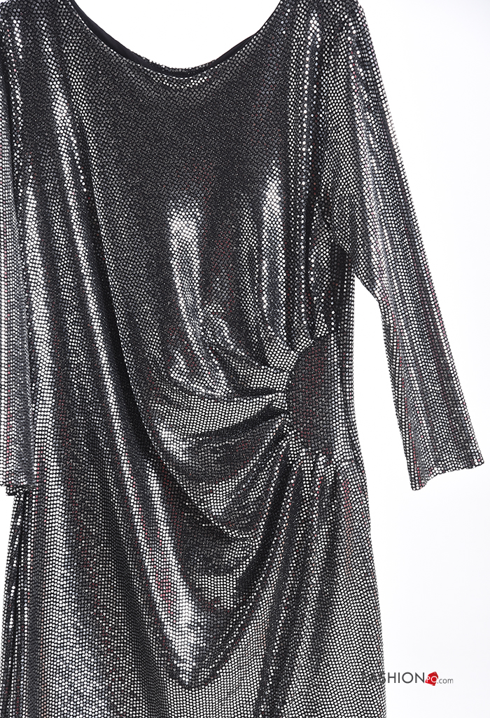 Vestido por la rodilla manga larga cuello redondo con lentejuelas