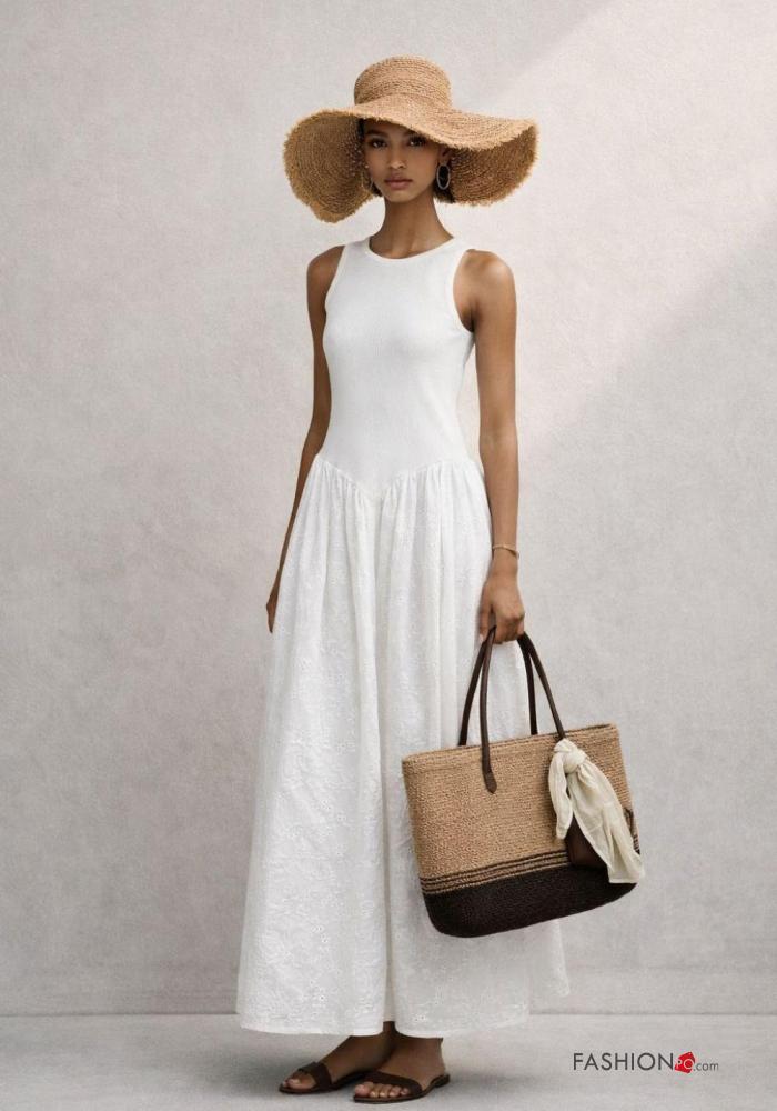 Vestido de Algodón sin mangas bordado inglés
