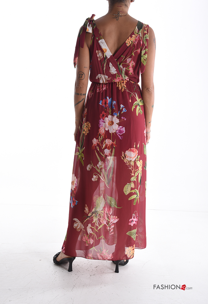 Home > Ropa > Vestidos > Vestido sin mangas espalda descubierta ajustable largo Estampado Floral con cuello en v con forro