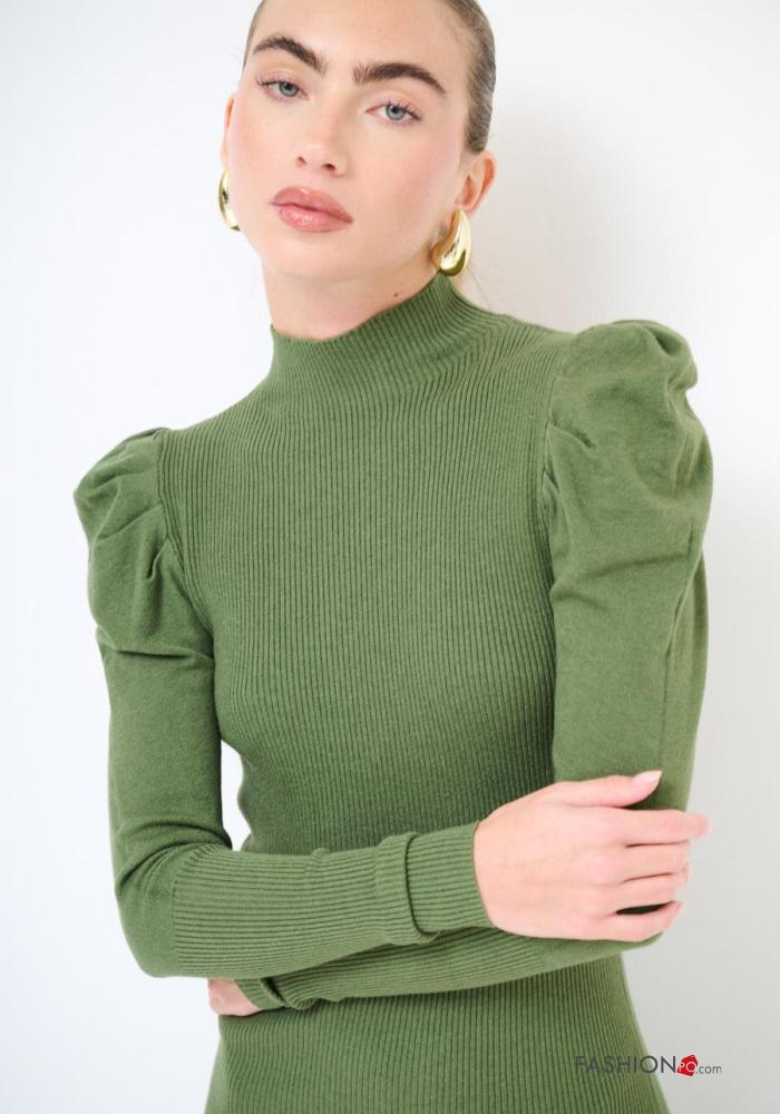 Vestido manga larga mangas de globo/ abullonada por la rodilla de cuello alto