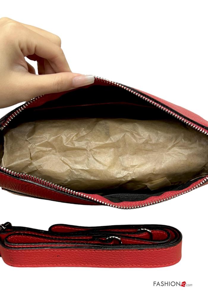 Sac en Cuir Véritable avec fermeture éclair avec bandoulière