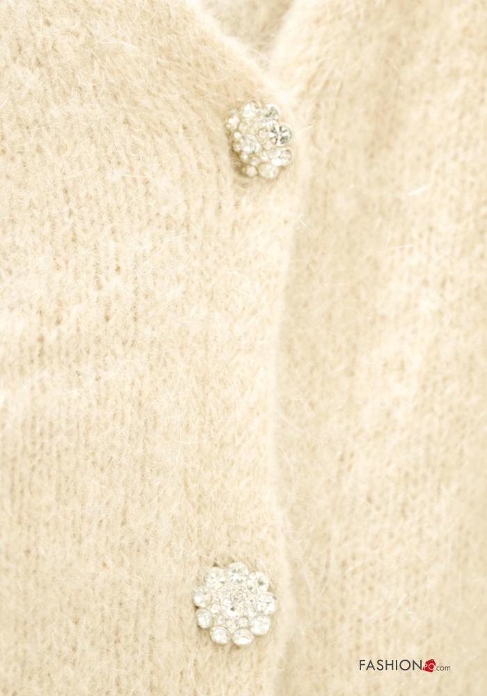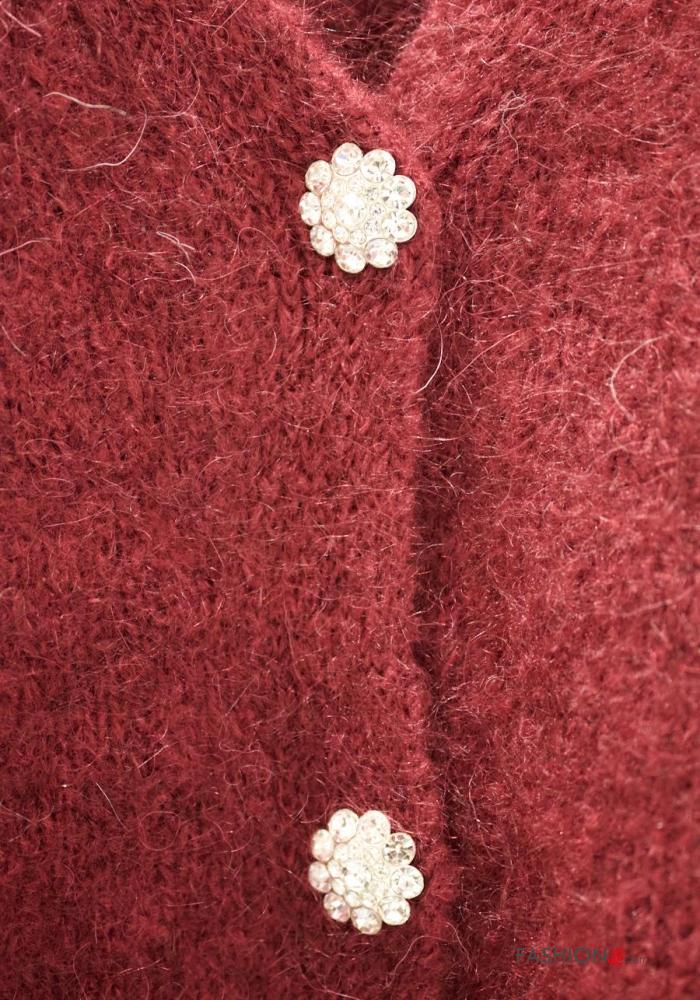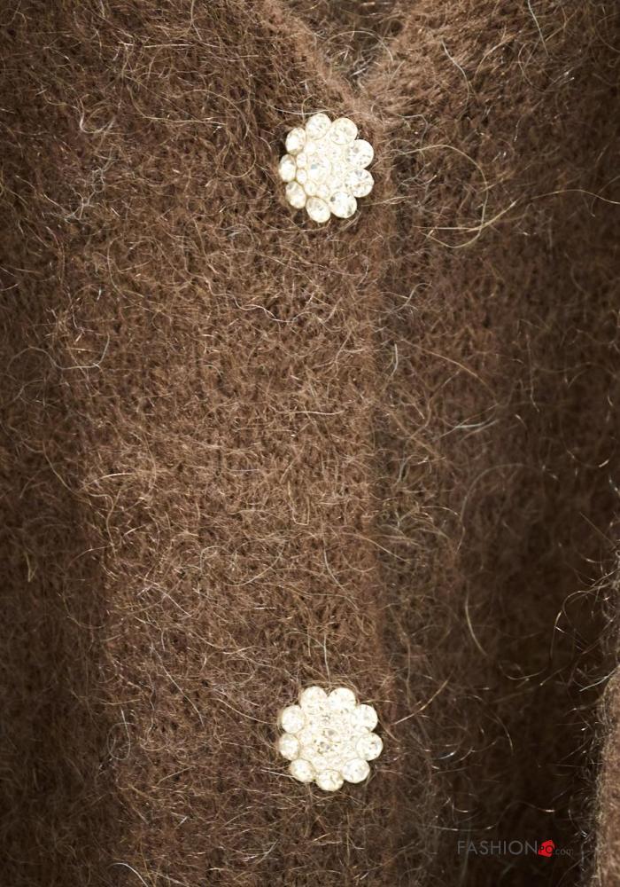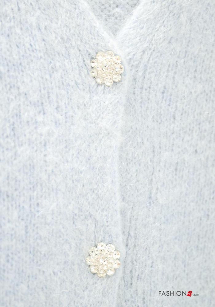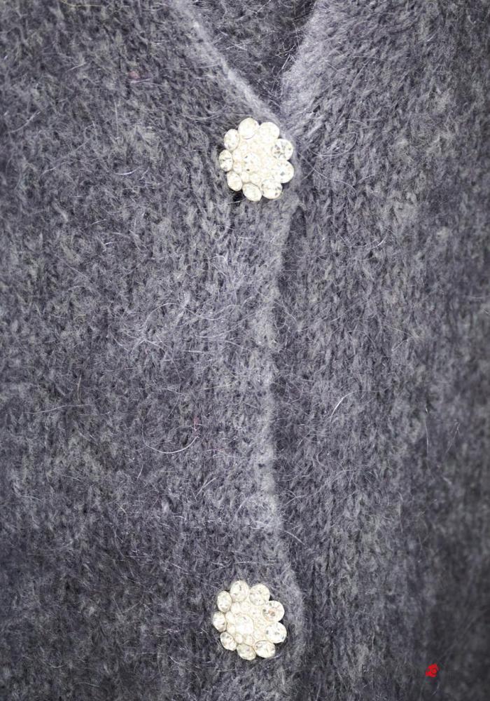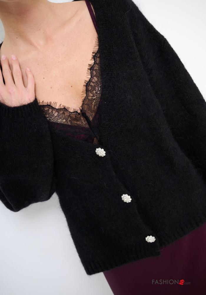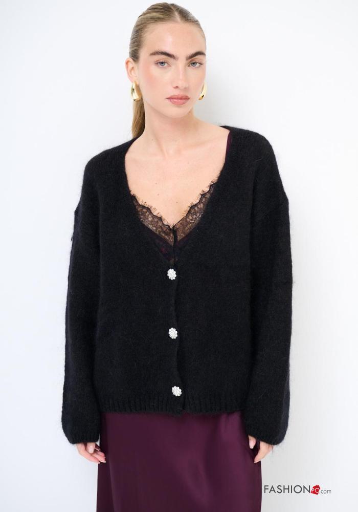 Gilet en Mélange de Laine détail dentelle manches longues à boutons à col en V