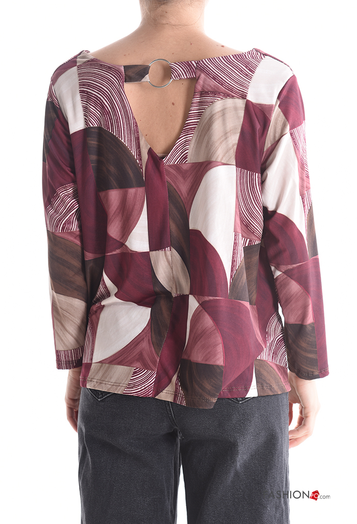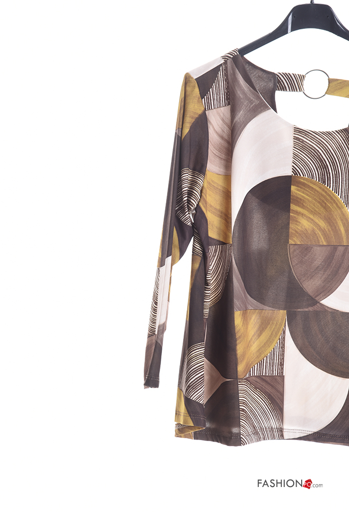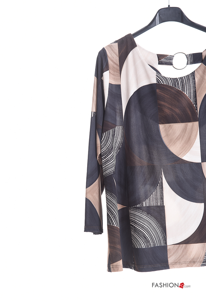 Blouse avec boucle manches longues à Imprimé Géométrique