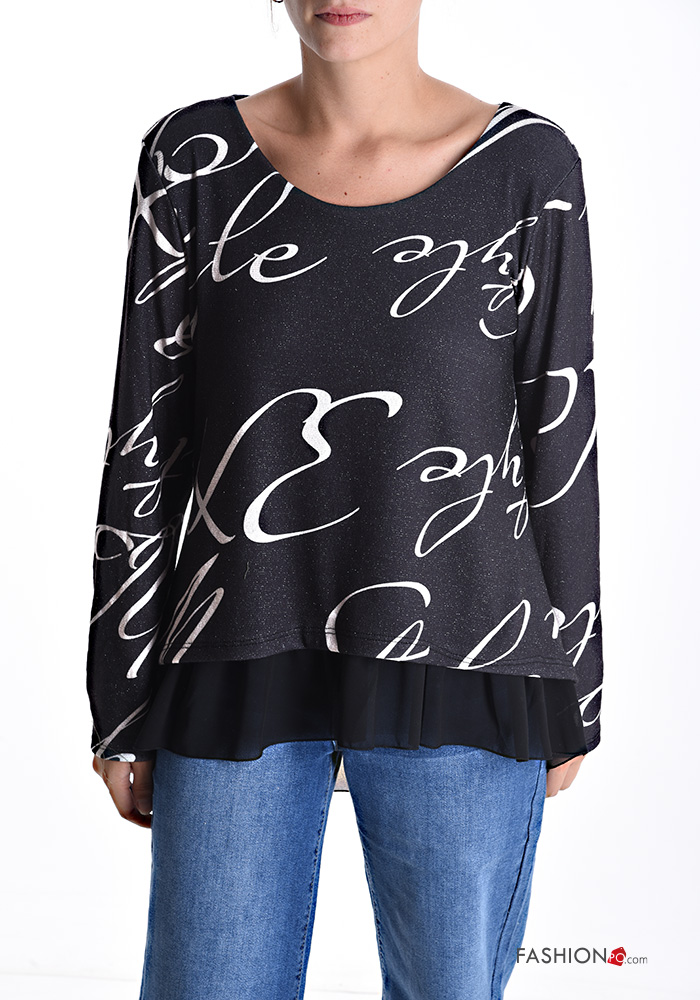 T-shirt à manches longues manches longues chiffon col rond lurex Imprimé écrit