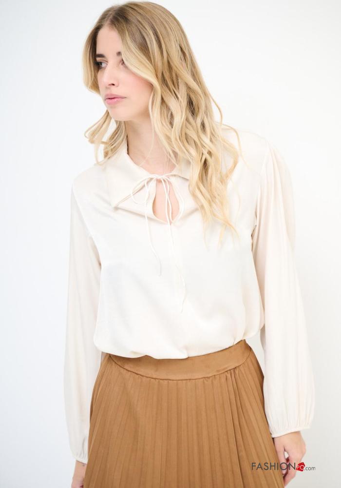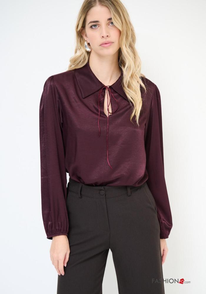 Home > Vêtements > Chemises & Blouses > Blouse manches longues satin à collet avec noeud