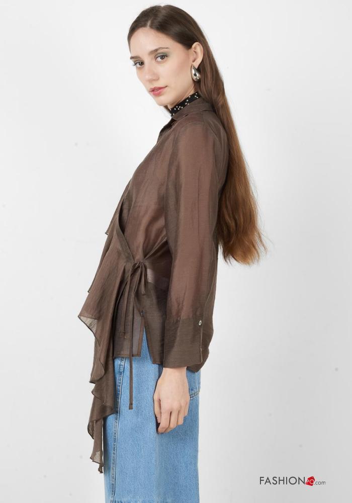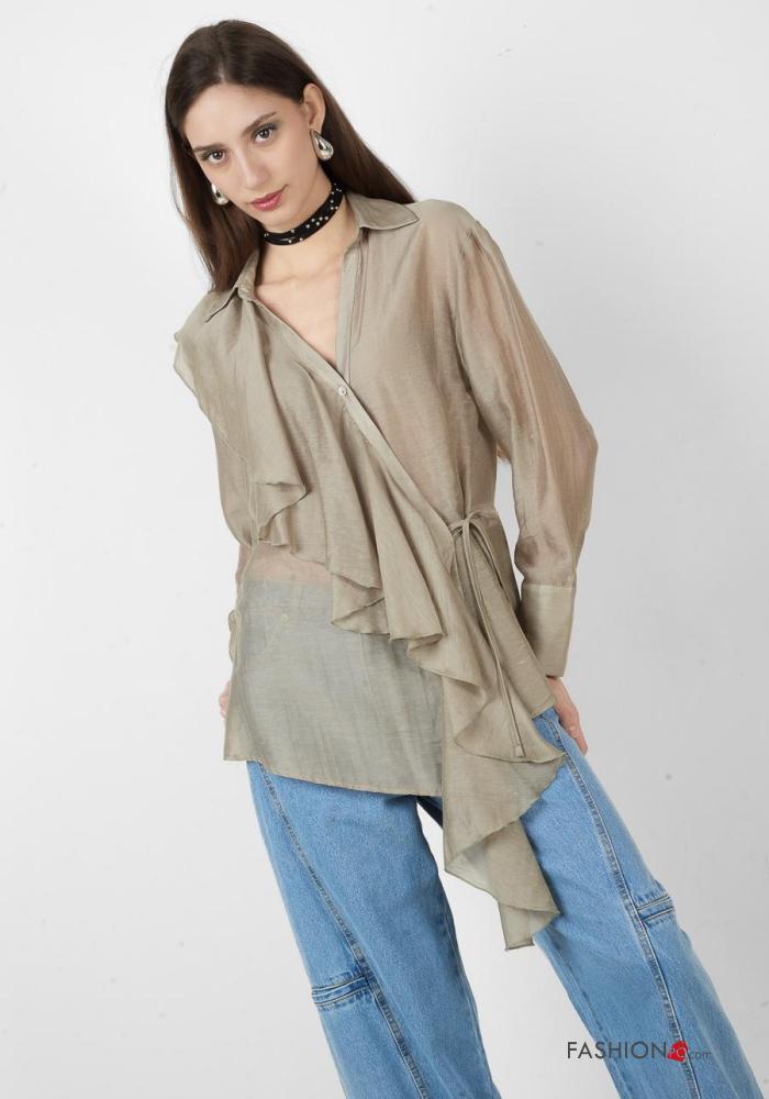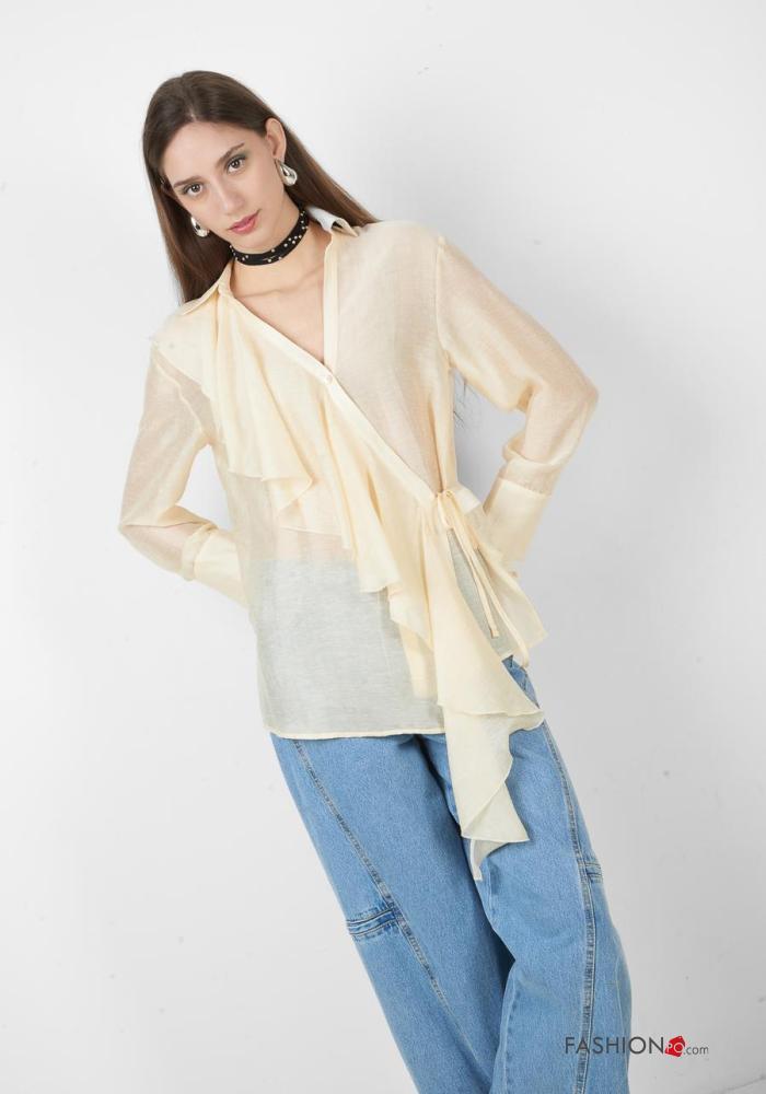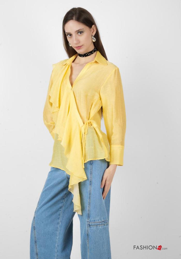 Home > Vêtements > Chemises & Blouses > Blouse en Lin manches longues à collet à boutons à col en V