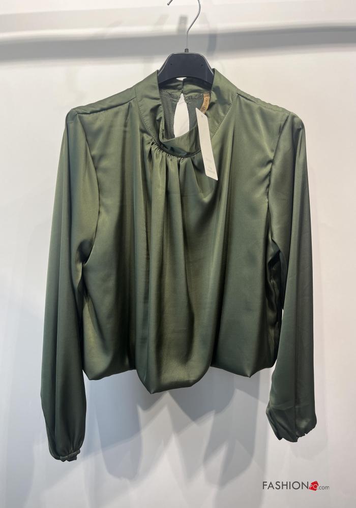 Home > Vêtements > Chemises & Blouses > Blouse en Coton satin manches longues à col roulé avec élastique