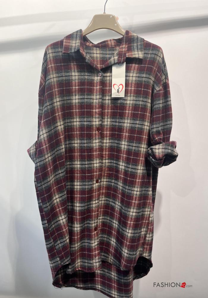 Home > Vêtements > Chemises & Blouses > Chemise en Coton manches longues à collet Motif tartan à boutons