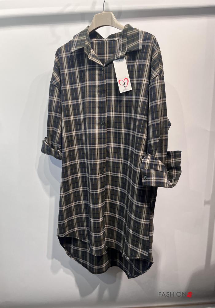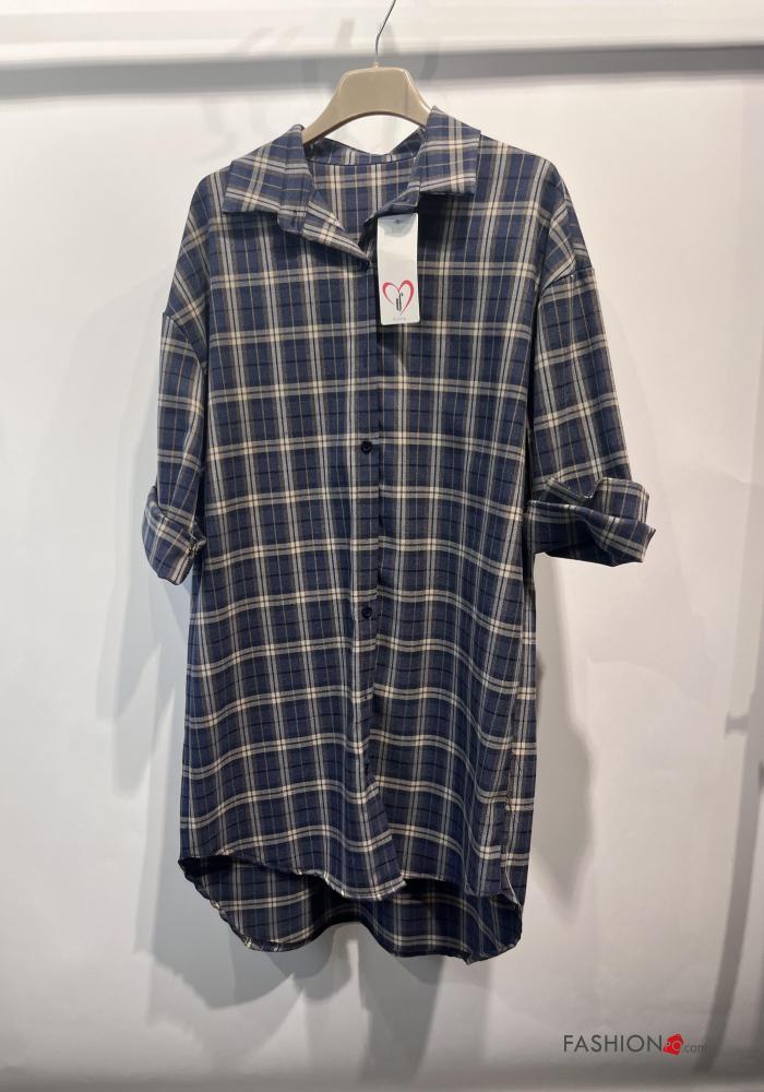 Chemise en Coton manches longues à collet Motif tartan à boutons