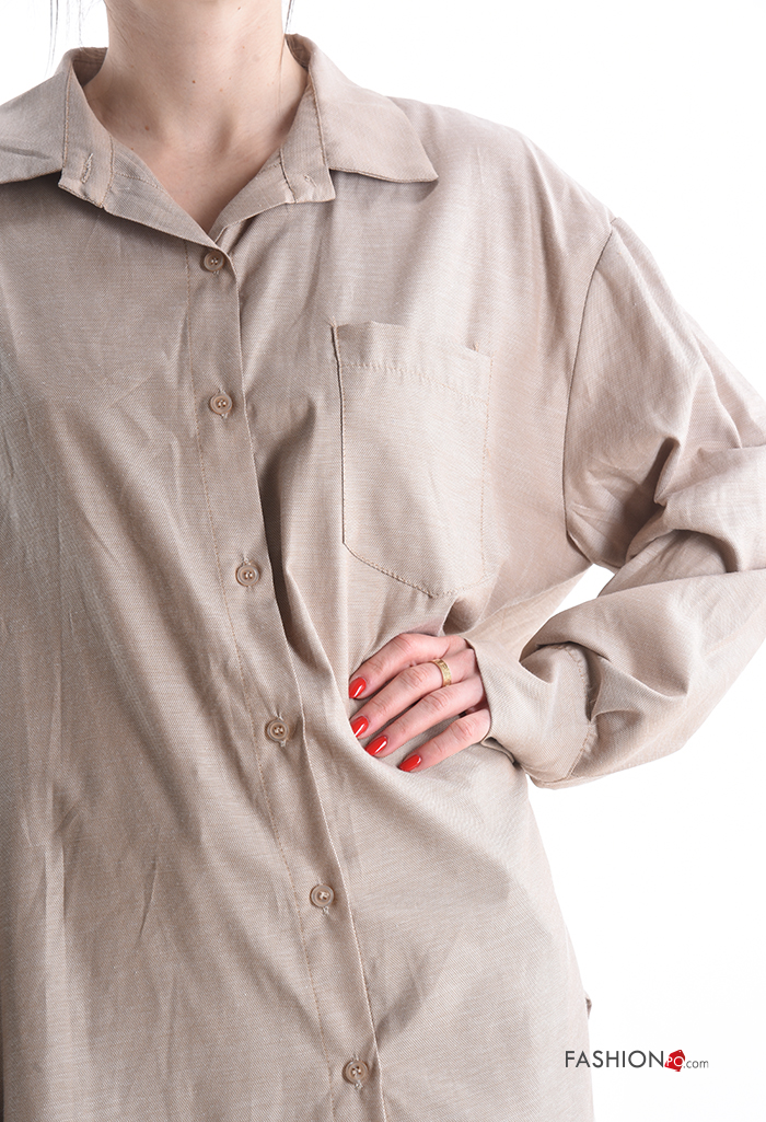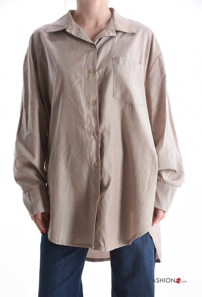 Chemise en Coton manches longues à collet à boutons avec poches
