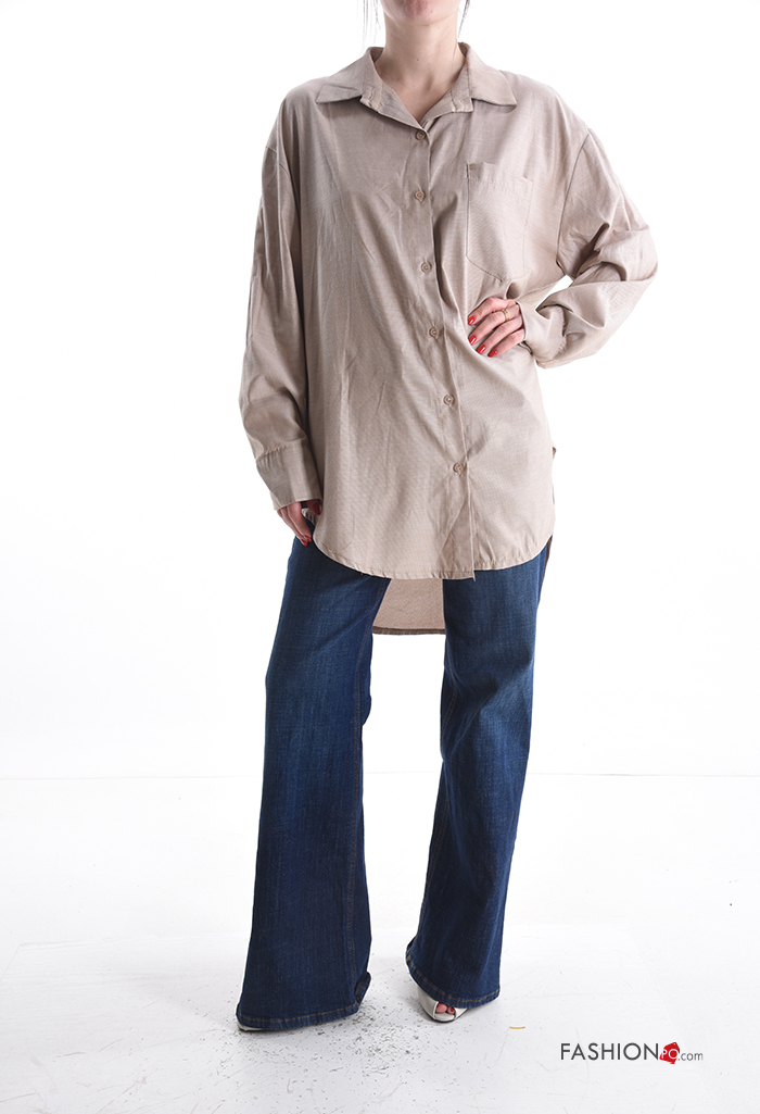 Home > Vêtements > Chemises & Blouses > Chemise en Coton manches longues à collet à boutons avec poches