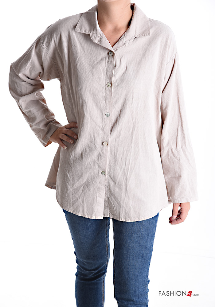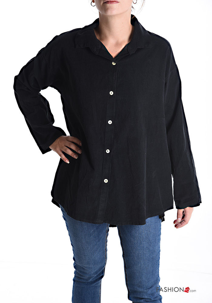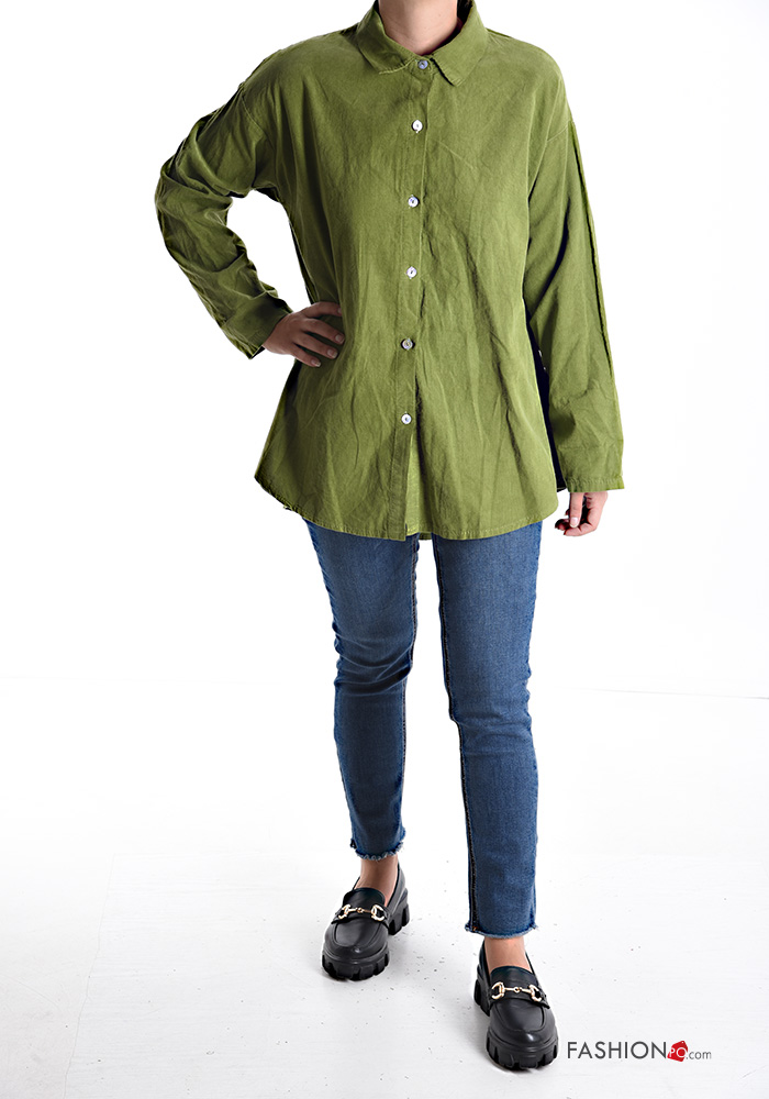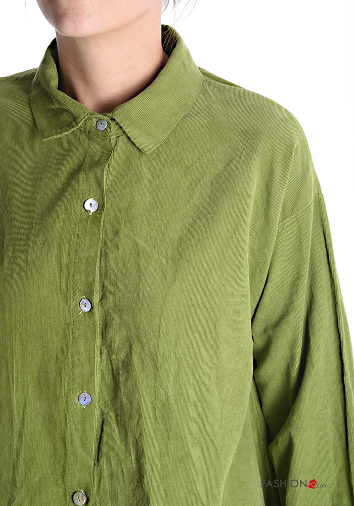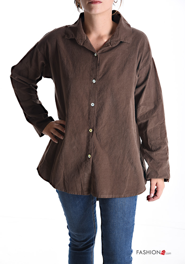 Chemise en Coton Côtelé en Velours manches longues à boutons