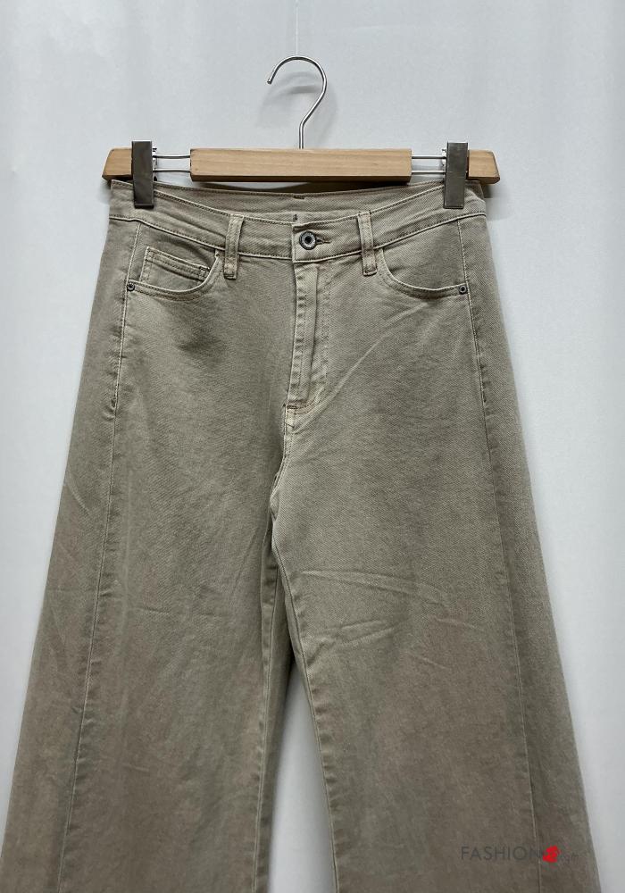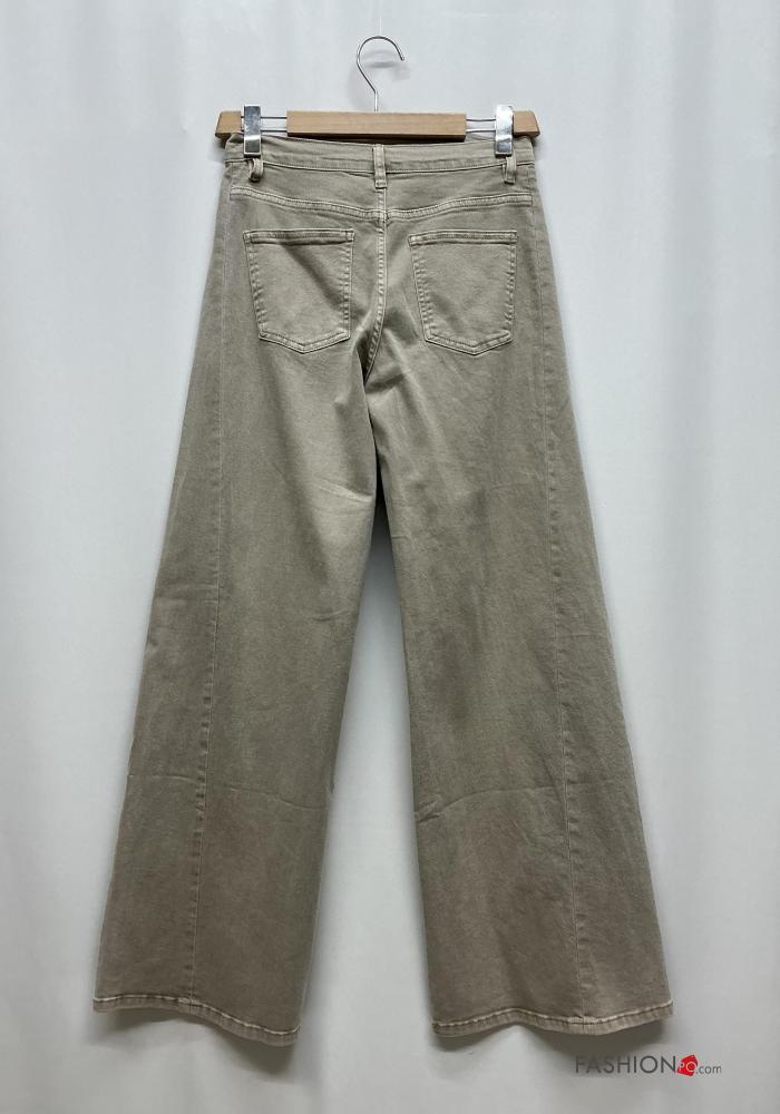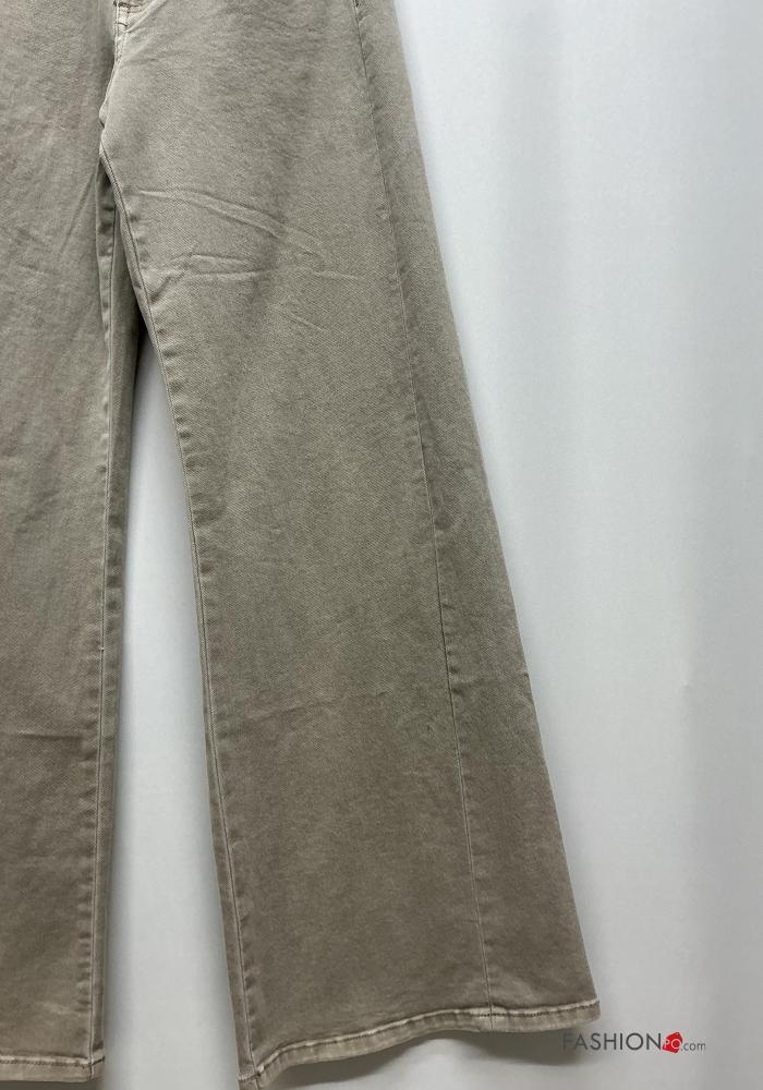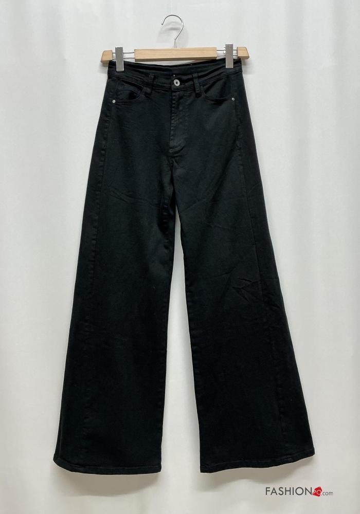 Jeans en Coton à boutons avec fermeture éclair avec poches