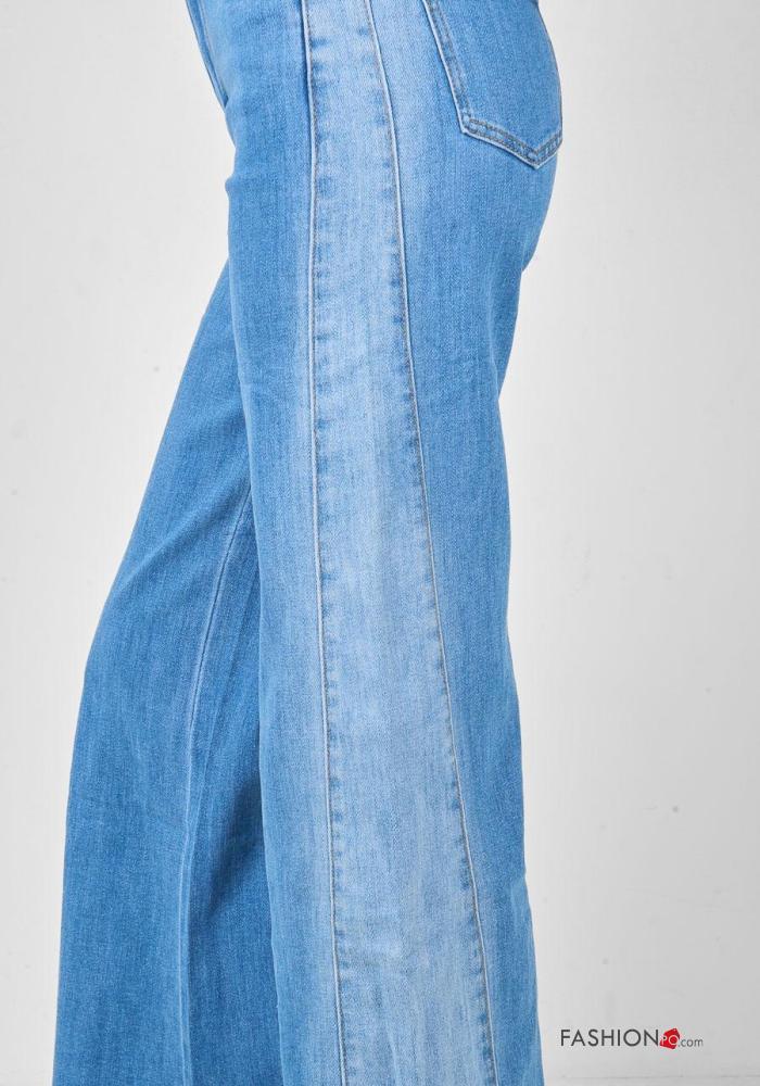 Jeans en Coton en denim au bord brut à boutons avec fermeture éclair avec poches